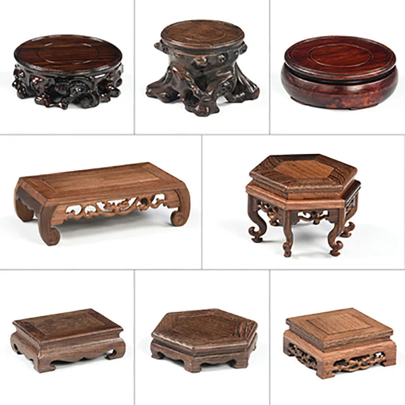 Wooden Pedestal Display Stand Solid Wood Carving Handicraft Decorative Base for Bonsai statues Tea Set Teapot Ornaments Display