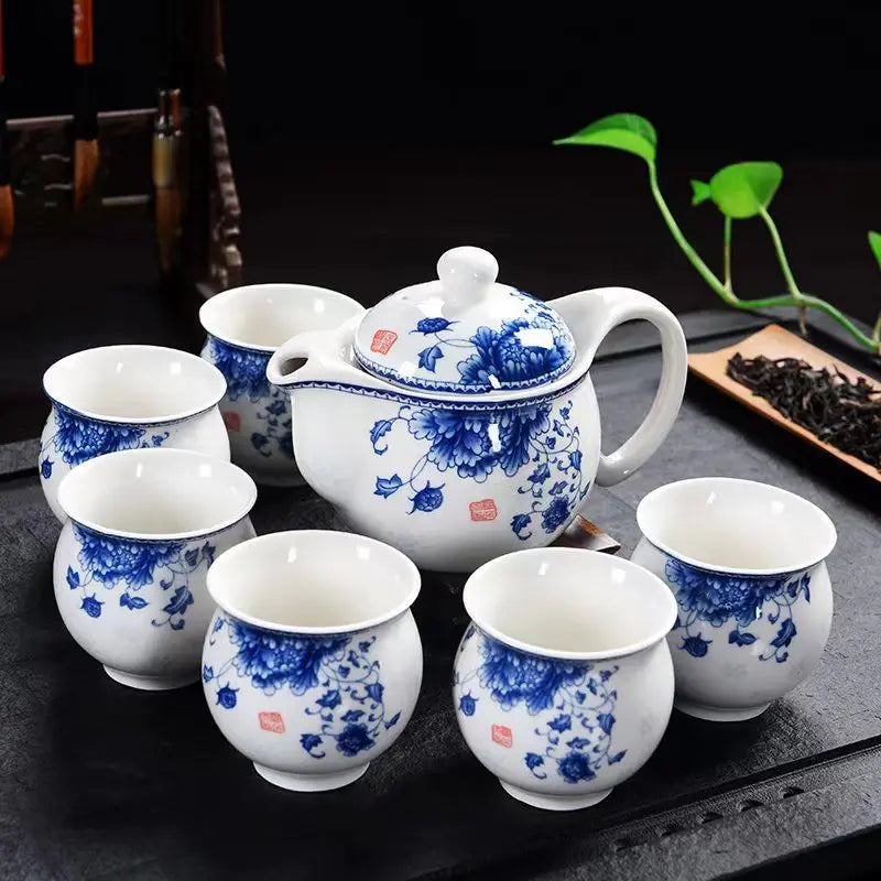 Blue and white porcelain Tea set Include 1 Pot 6 Cup, High quality elegant Cup,Beautiful and easy teapot kettle,kung fu teaset