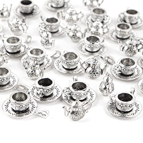 AUEAR, 40 Pack Teapot Tea Cup Charm Pendant Coffee Mug Charms for