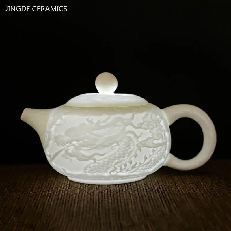 260ml Dragon Pattern Ceramic Tea Pot Chinese Ball Hole Filter Xishi Teapot Handmade White Porcelain Beauty Kettle Custom Tea Set