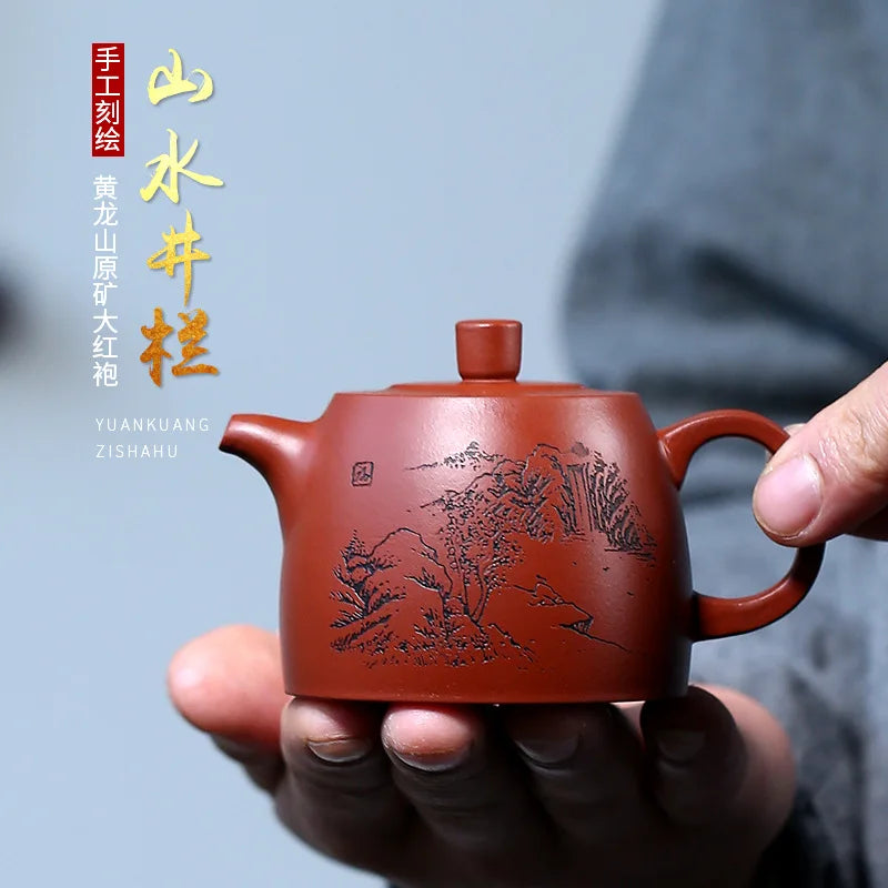 1pc Hand-carved Purple Clay Teapot Handprint Dragon Pattern Raw Ore Dahongpao Kettle Yixing Famous Tea Pot Teaware Tea Ceremony