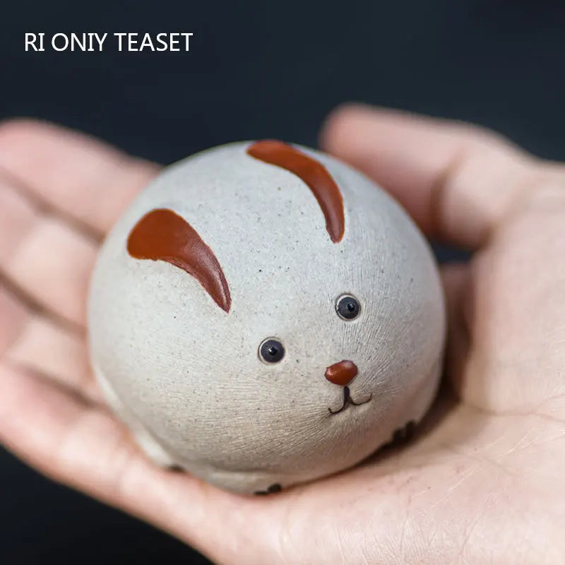 Chinese Yixing Purple Clay Tea Pet Handmade Sculpture Zodiac Rabbit Statue Ornaments Tea Figurine Craft Zisha Tea Set Decoration