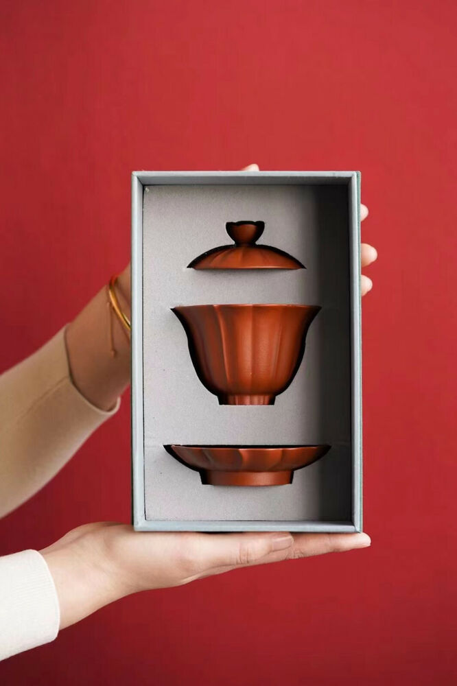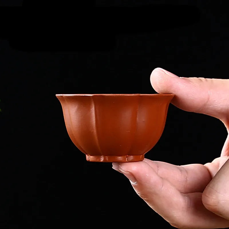 Small Lotus Tea Cup Set, Yixing Zisha Tea Cup, Kungfu Tea Set, Ceramic Master Cup, Single Teacup, Black, Red, 3Pcs Pack