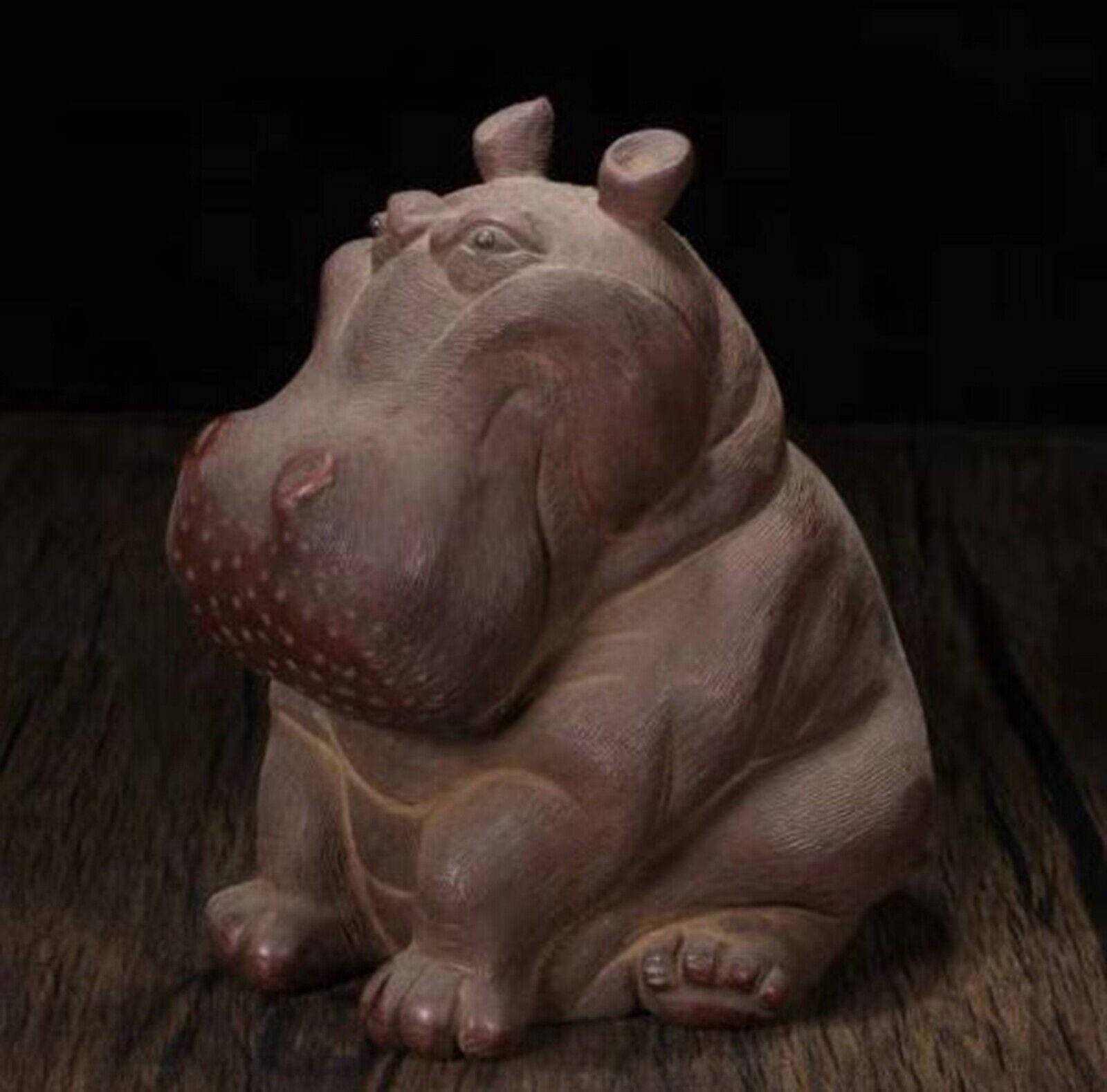 Chinese zisha clay Cute Hippo statue sculpture Wealth home decor decorative rare