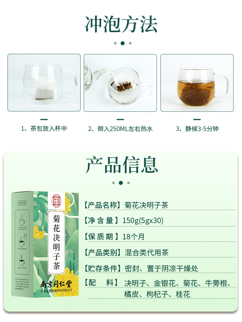Chrysanthemum Cassia Seed Tea Eyesight Liver Cleanse 同仁堂菊花决明子茶150g(5g*30) 养生茶