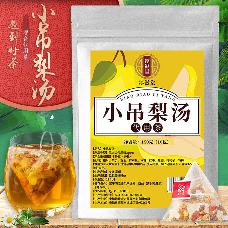 Brand: Chun Zitang Item No.: 56465sdf Selling: Packaging Raw materials and ingredients: see packaging Shelf life: 18 months Origin: Anhui Storage: Refrigeration Food Process: Cold soaked Whether gift boxed: No Production date: see packaging Manufacturer: Anhui Liuzhuan Jinfang Health Industry Co. ChunZhiTang small hanging pear soup 150 grams (self zipper white bag + triangle bag) Net content (specifications): 150 grams whether sugar: sugar