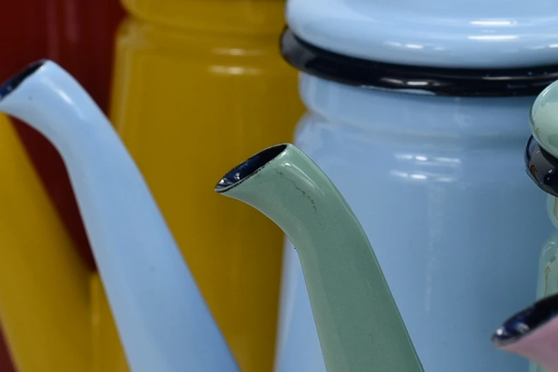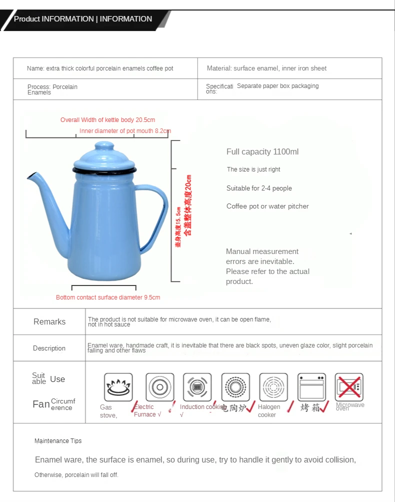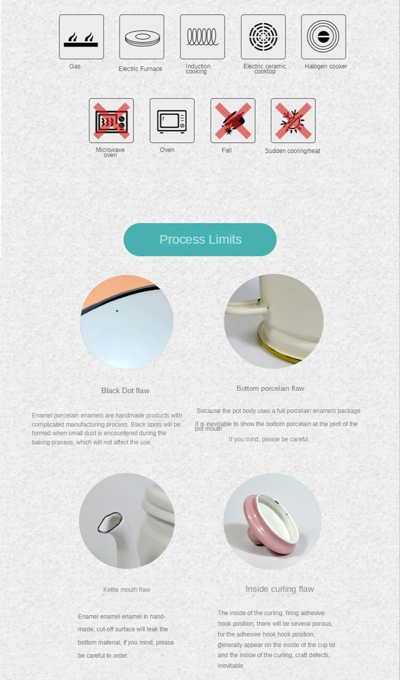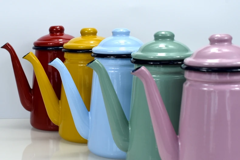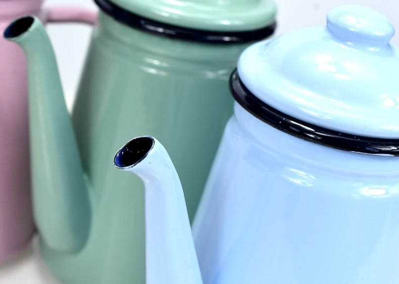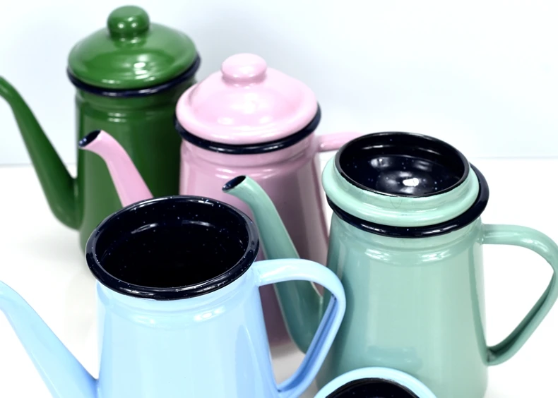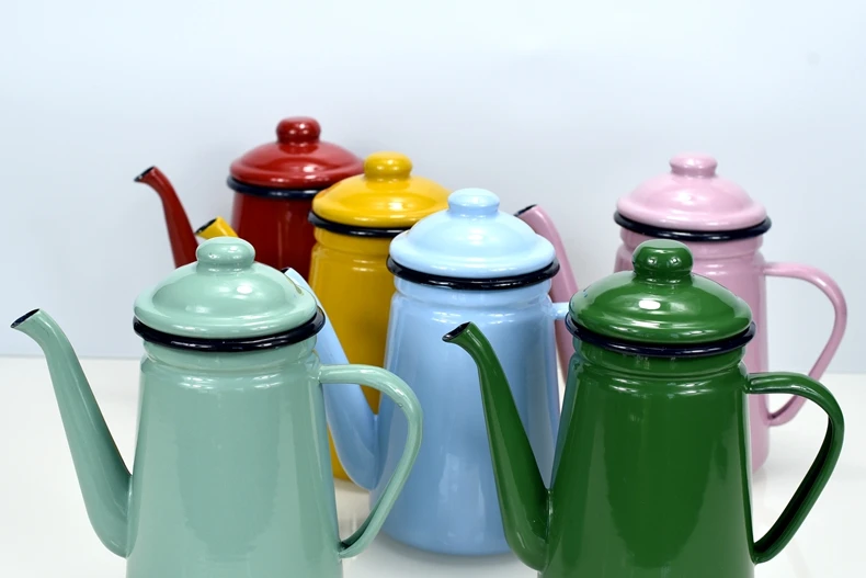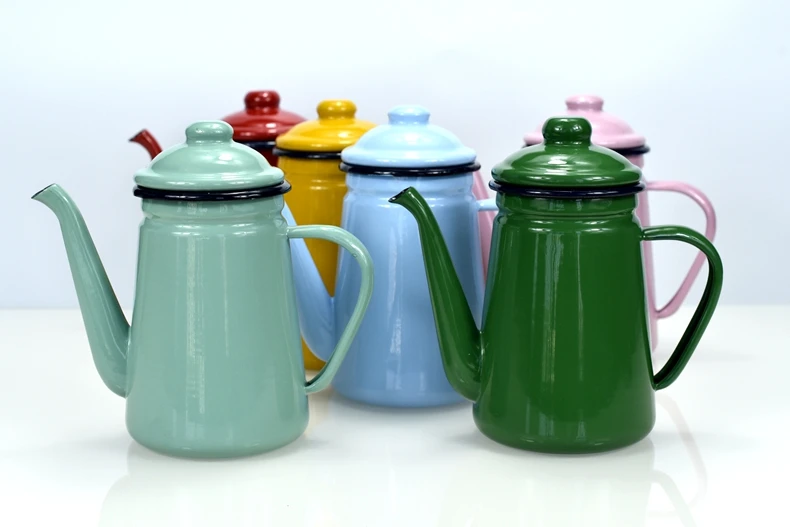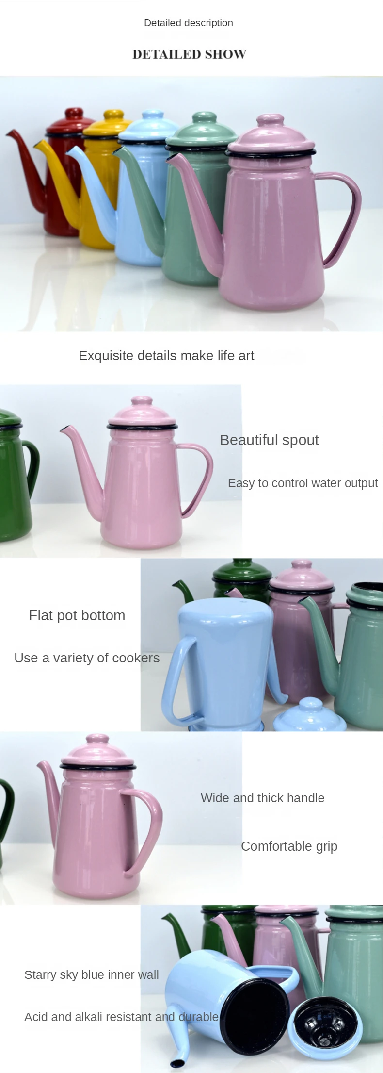 1.1L Enamel Coffee Pot Hand Tea Kettle Induction Cooker Gas Stove Universal Enamel Vintage Kettle Water Kettle Teapot