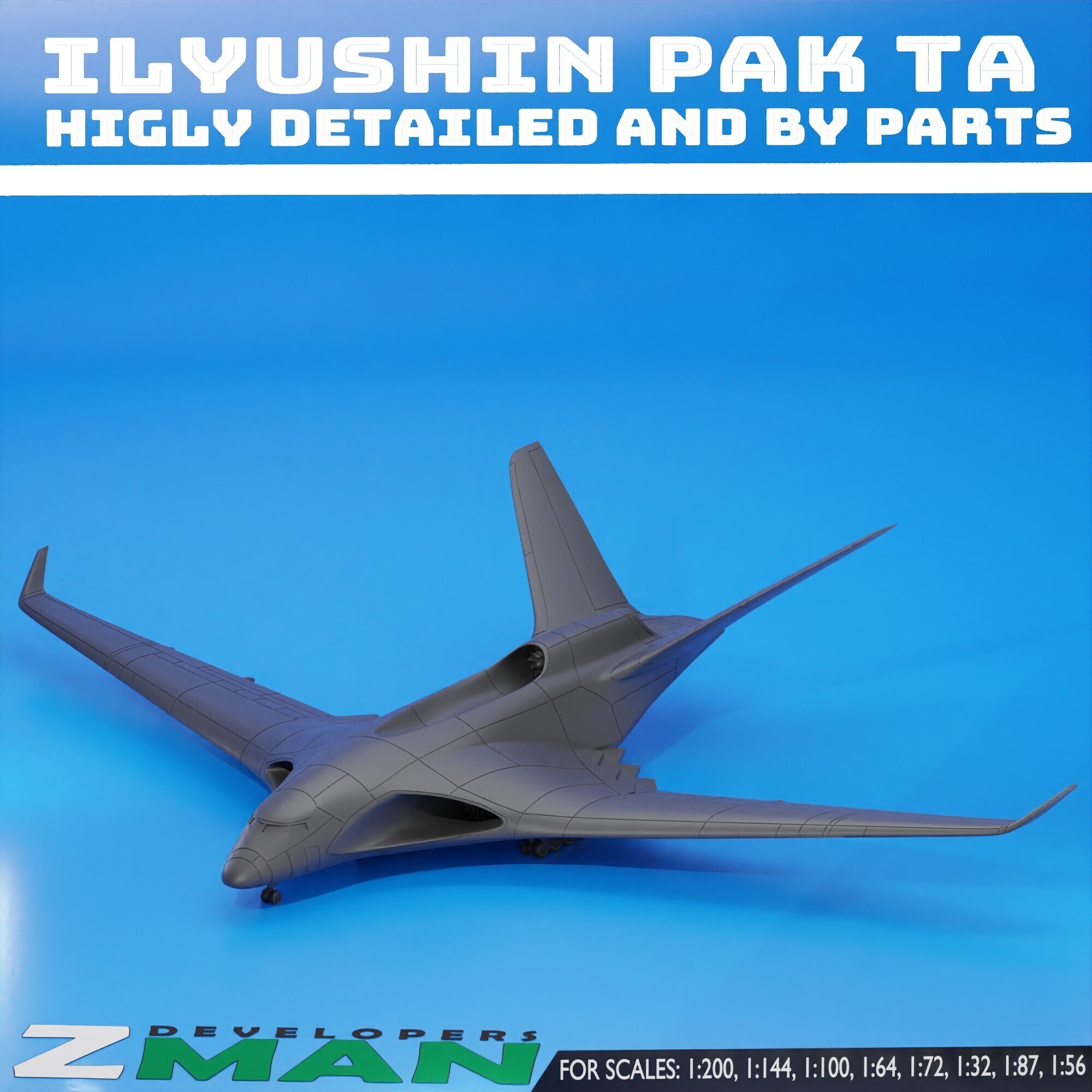 1/200 Russian ILPAK-VTA stealth transport aircraft Unpainted Model 3D Printed