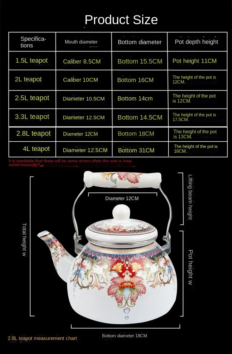 1.5-4L Thickened Enameled Teapot Heated Enameled Teapot Enameled Kettle Enameled Teapot Enameled Coffeemaker