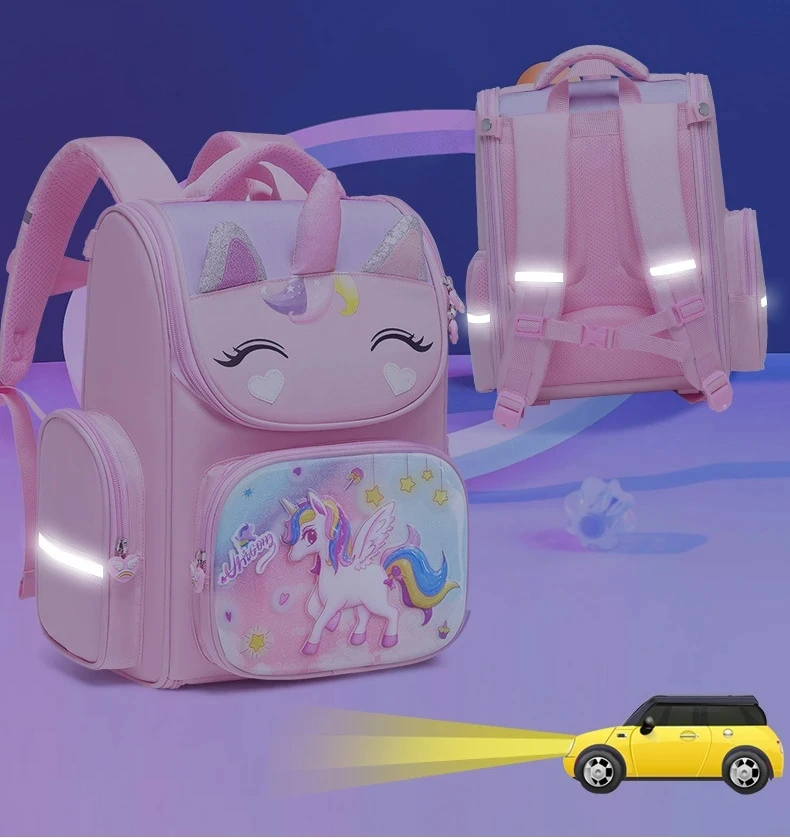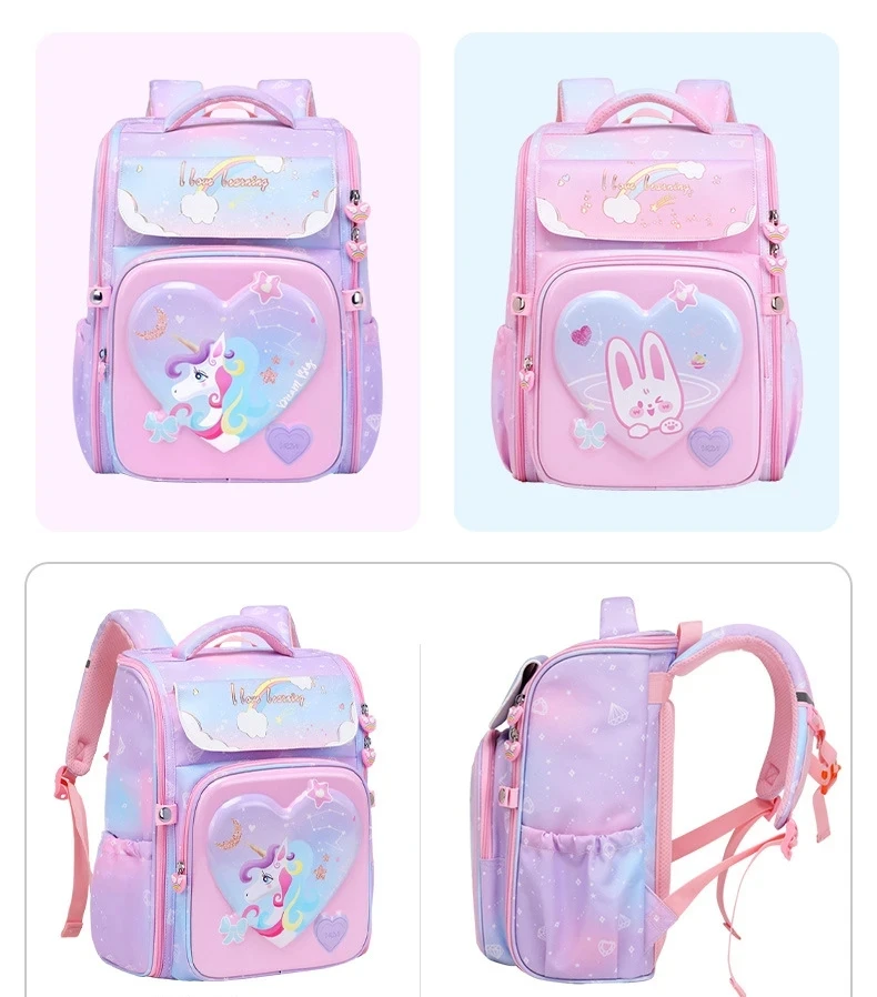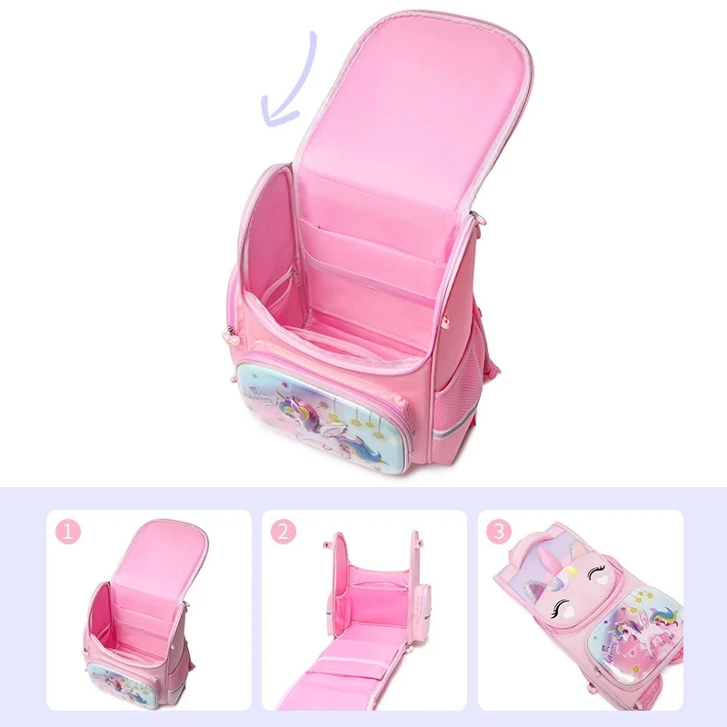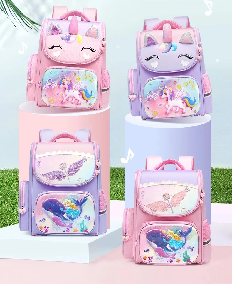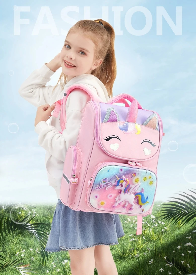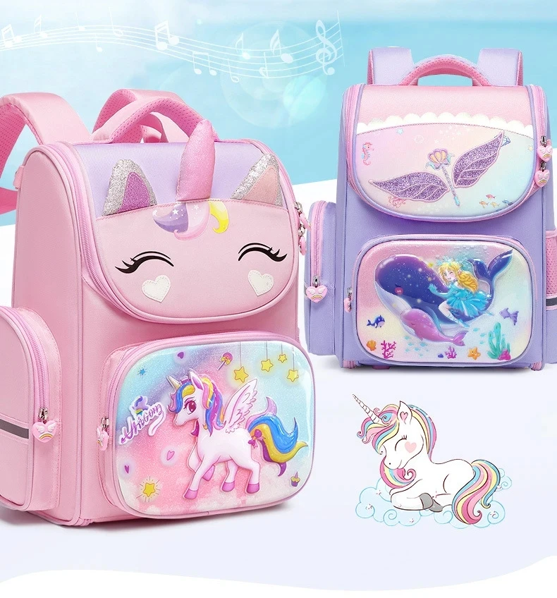 1-5 Grade Primary School Students Backpack Girls Schoolbag 3D Cartoon Unicorn School Bag Children Cute Rainbow Mochila Escolar