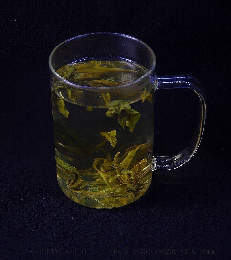 The water used to steep this tea should be about 160-180°F or 70-80°C. Use about 2 teaspoons (3 grams) of tea leaves for about every 5 ounces (150 milliliters) of water. A steeping time of about 3-5 minutes with more or less time is recommended depending on the desired concentration. As a rough guide, the hotter the water or the greater the amount of leaves used, the shorter the steeping time should be. The use of a covered glass or ceramic cup is recommended for steeping in order to appreciate the tea leaves.