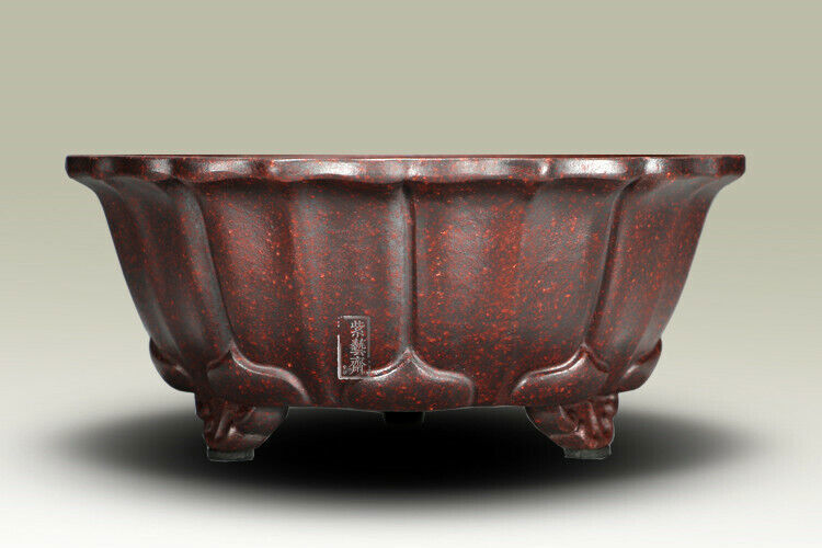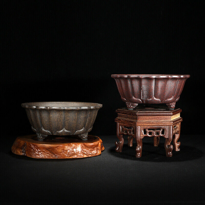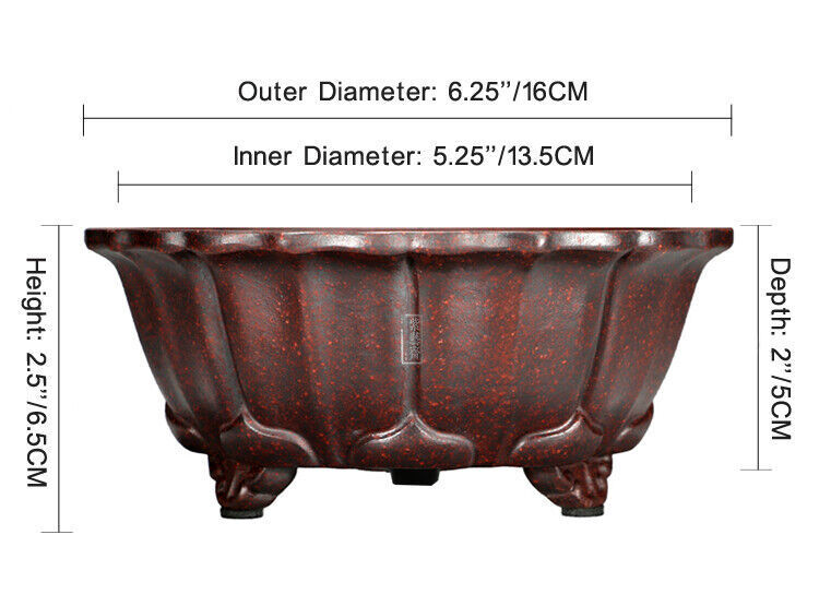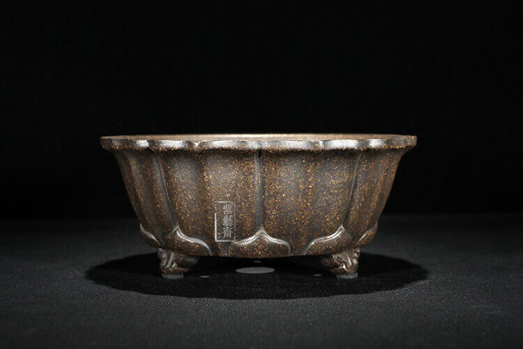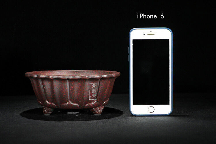 1 Pcs Lotus Shape Chinese Yixing Zisha Shohin Bonsai Pot 6.25''x6.25''x2.5''