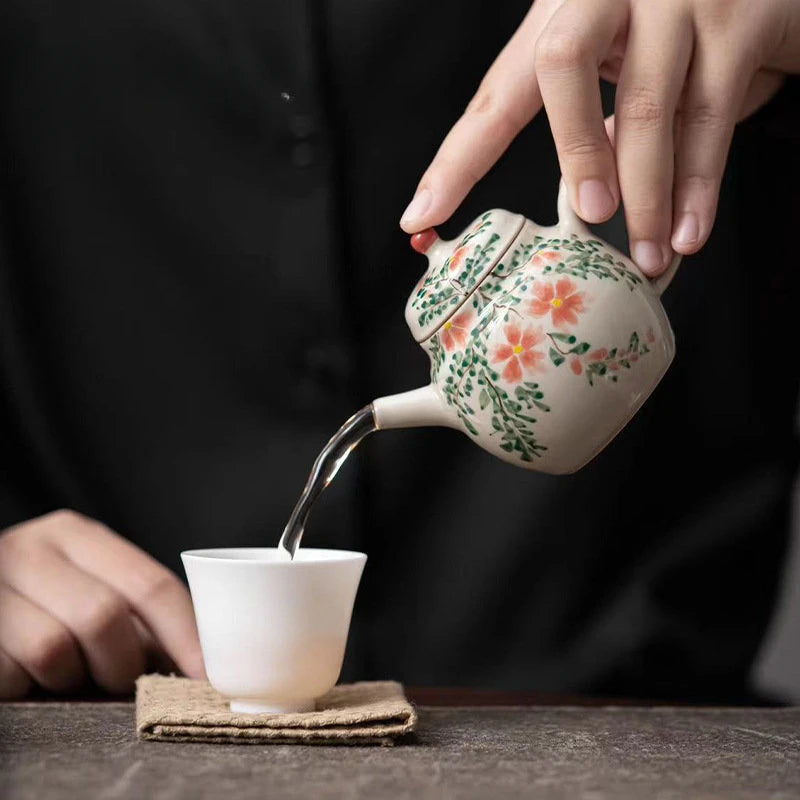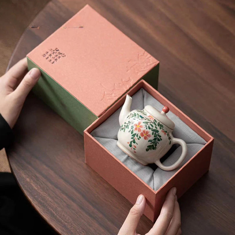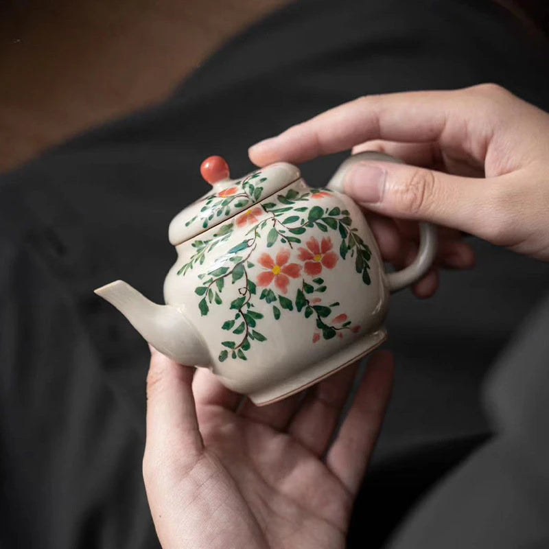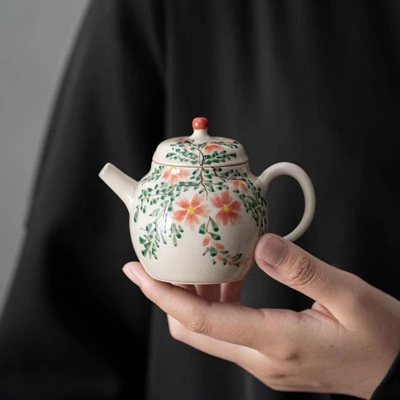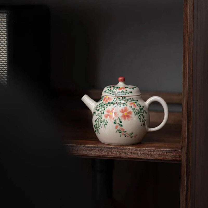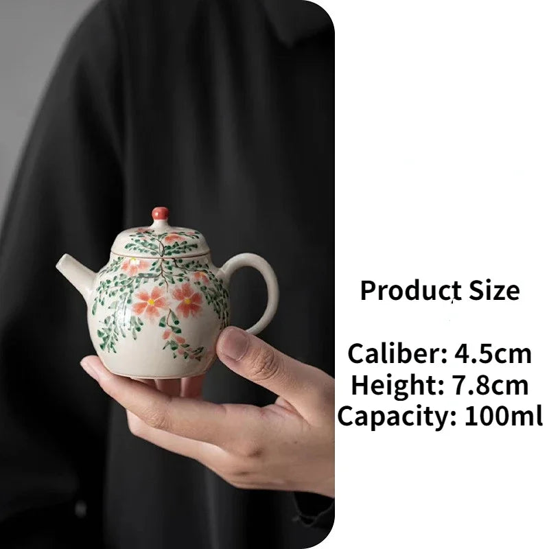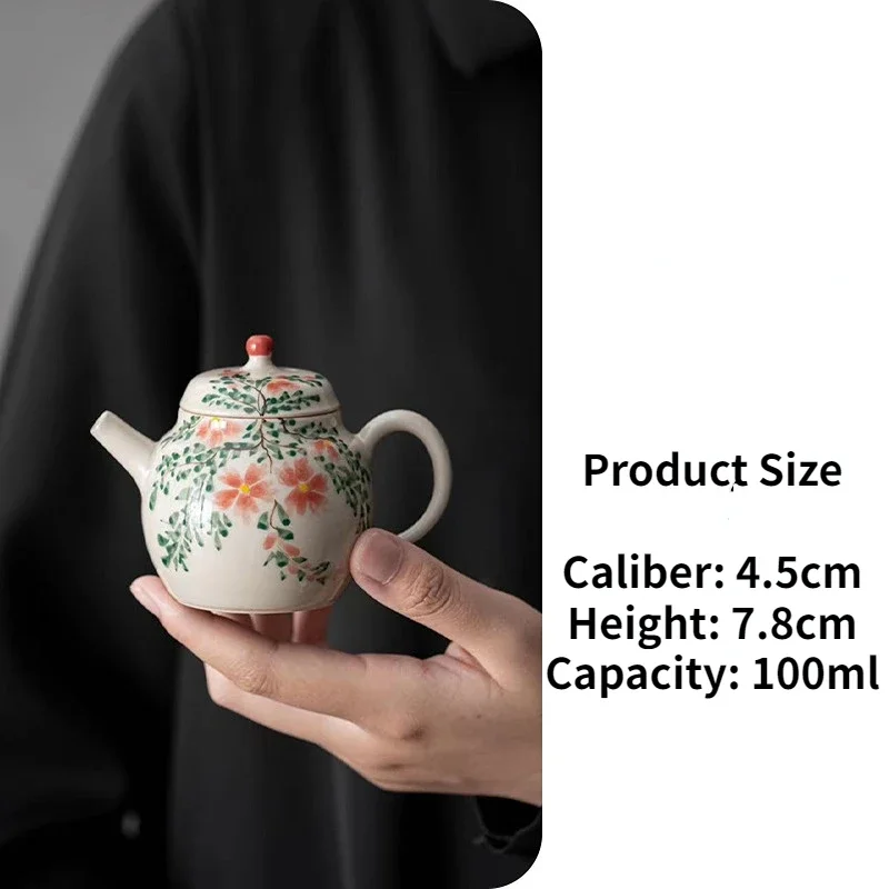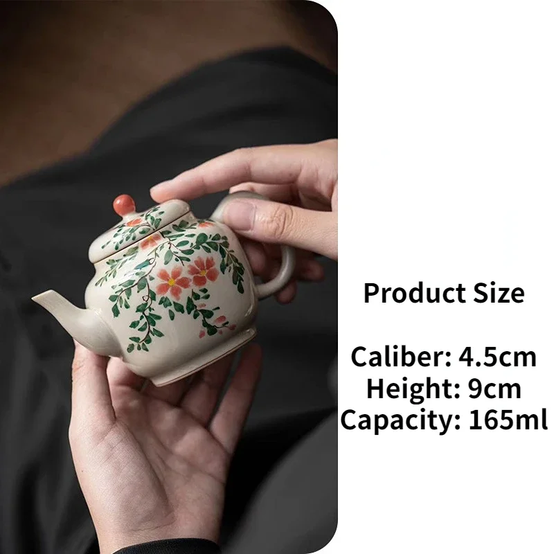 100/165ml Hand-painted Begonia Flower Sketch Teapot Exquisite Single Home Ceramic Tea Maker Kung Fu Tea Set Literati Teapot