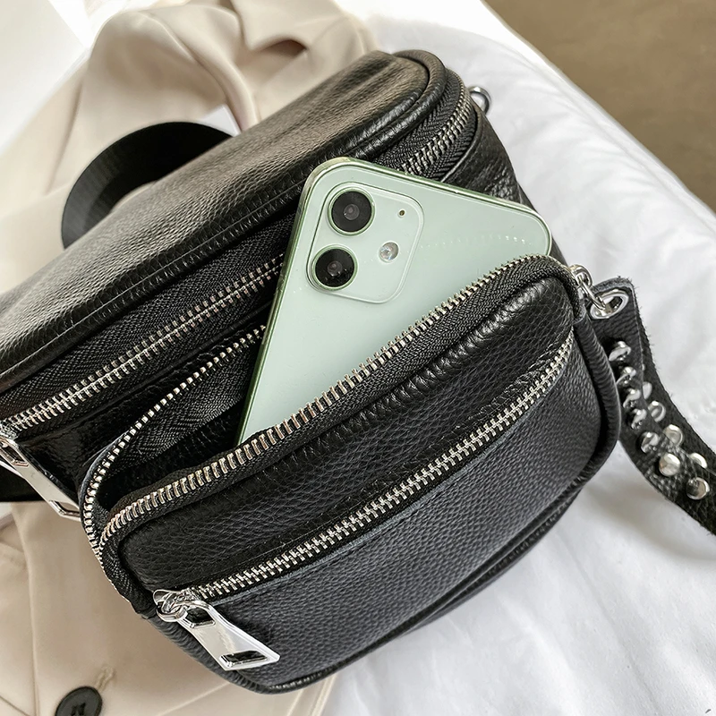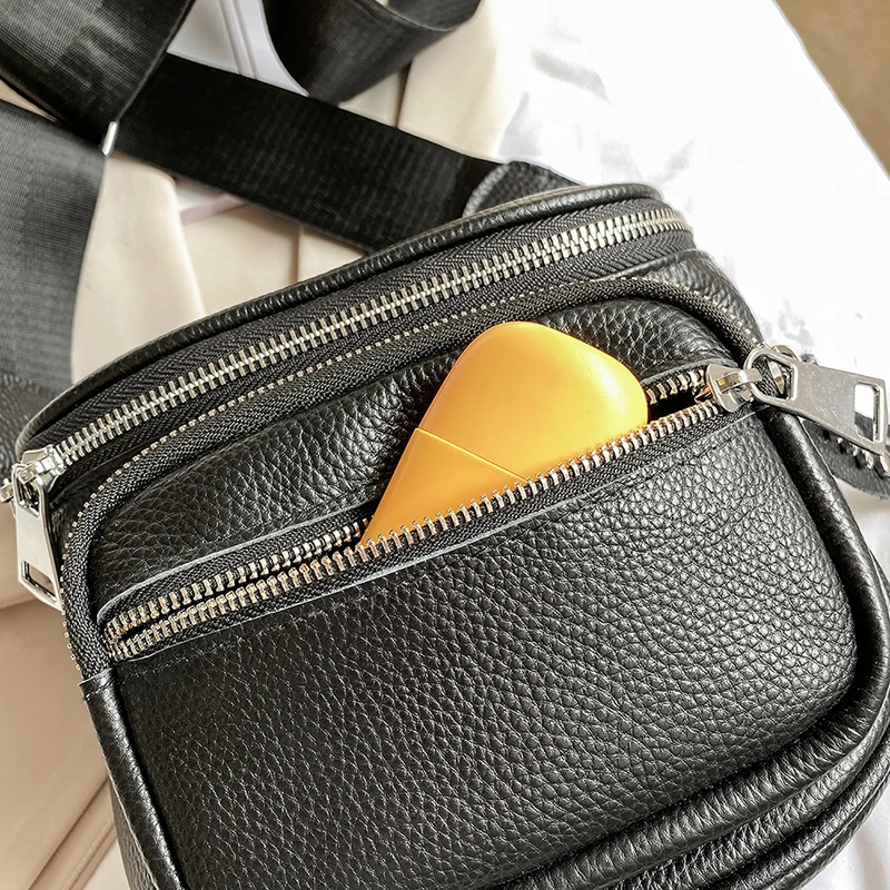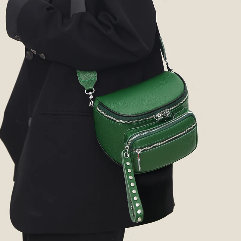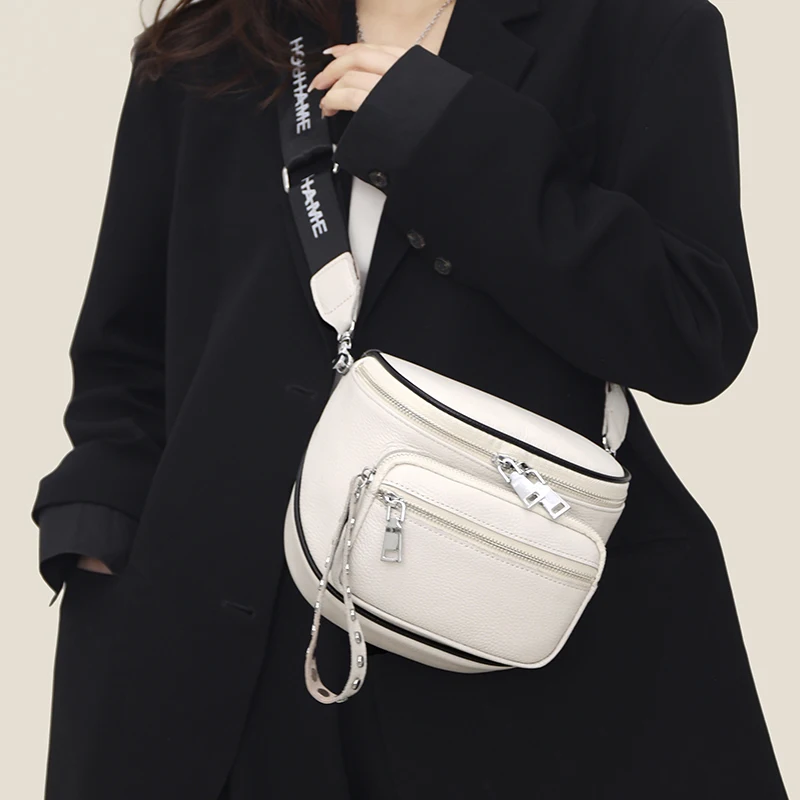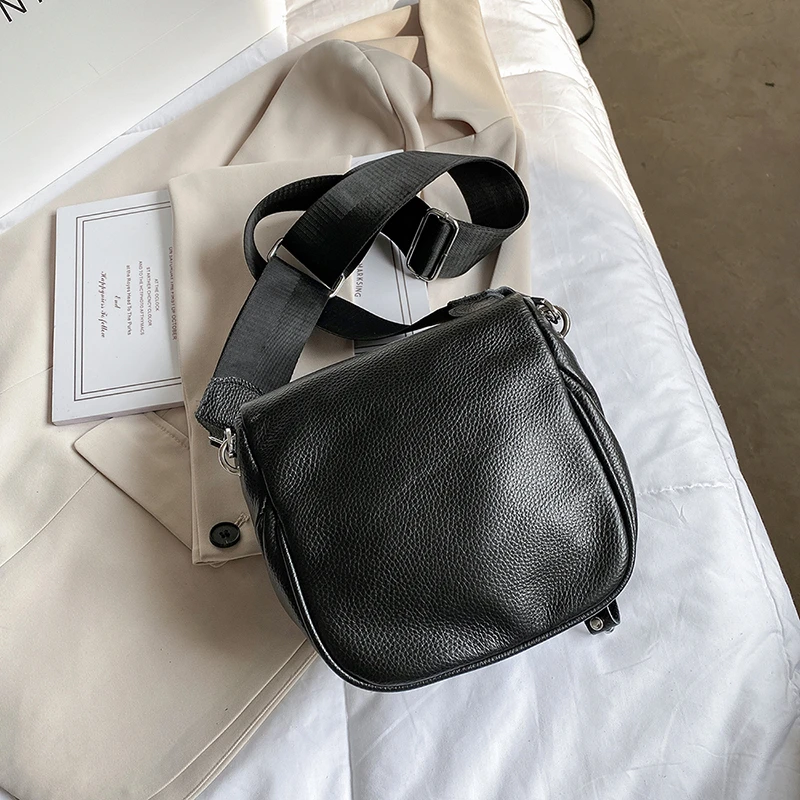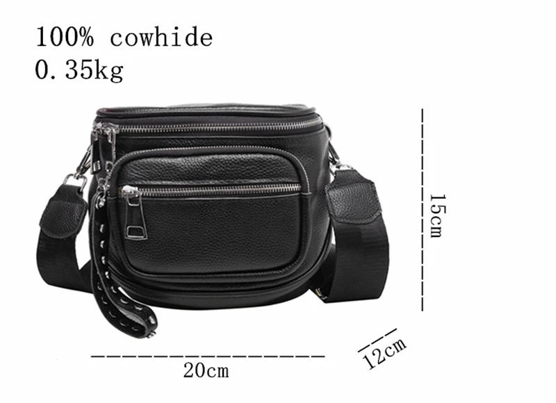 100% Cowhide Crossbody Bags Women Black Shoulder Handbags Bag Travel Saddle Bag
