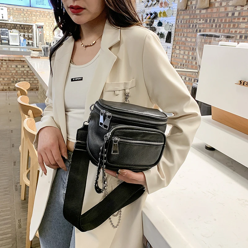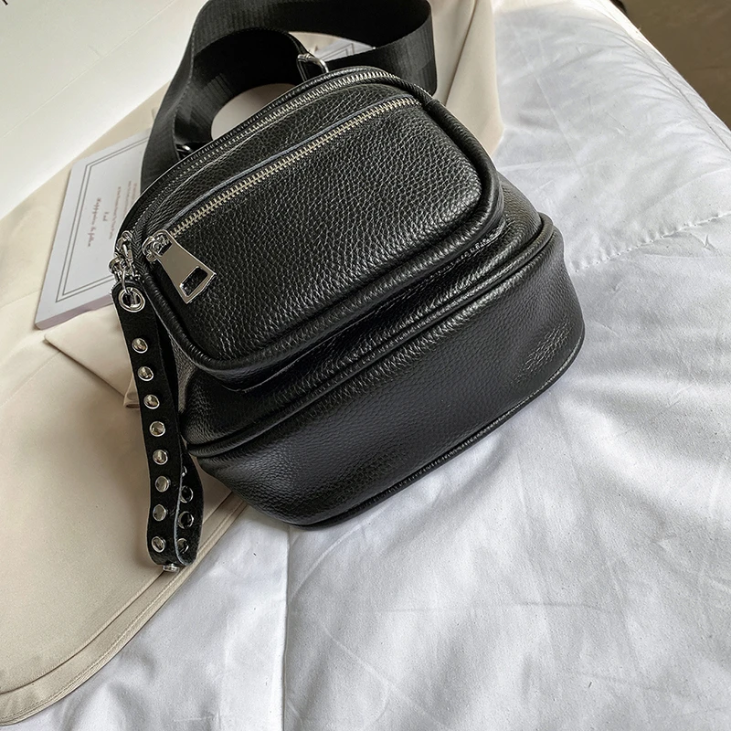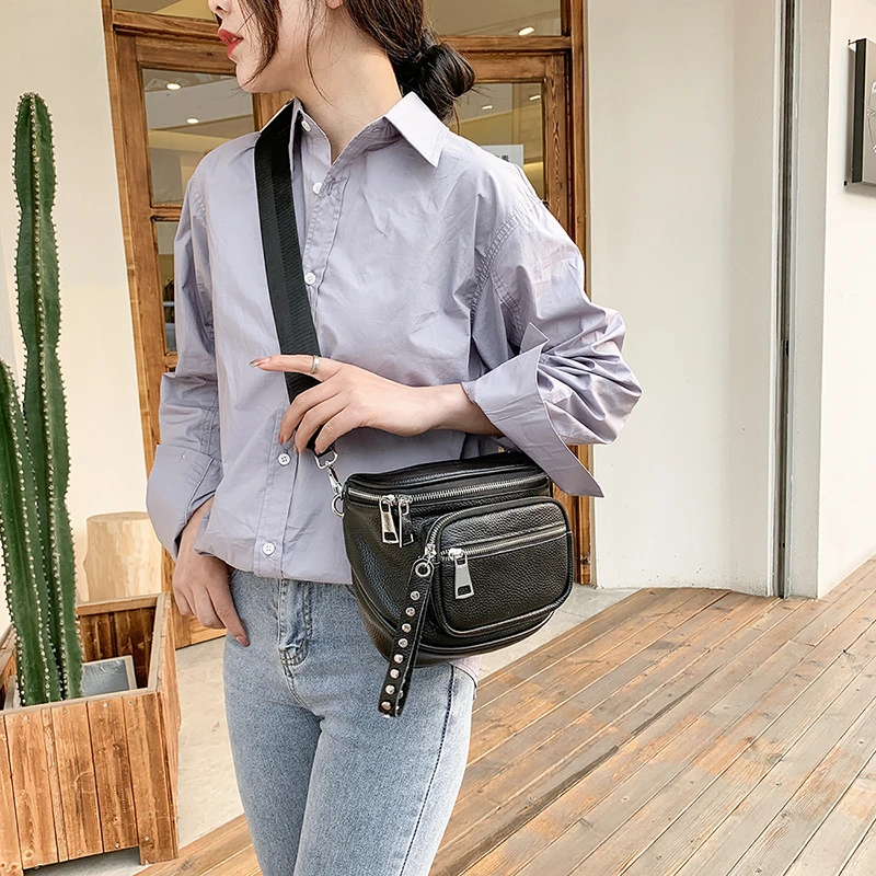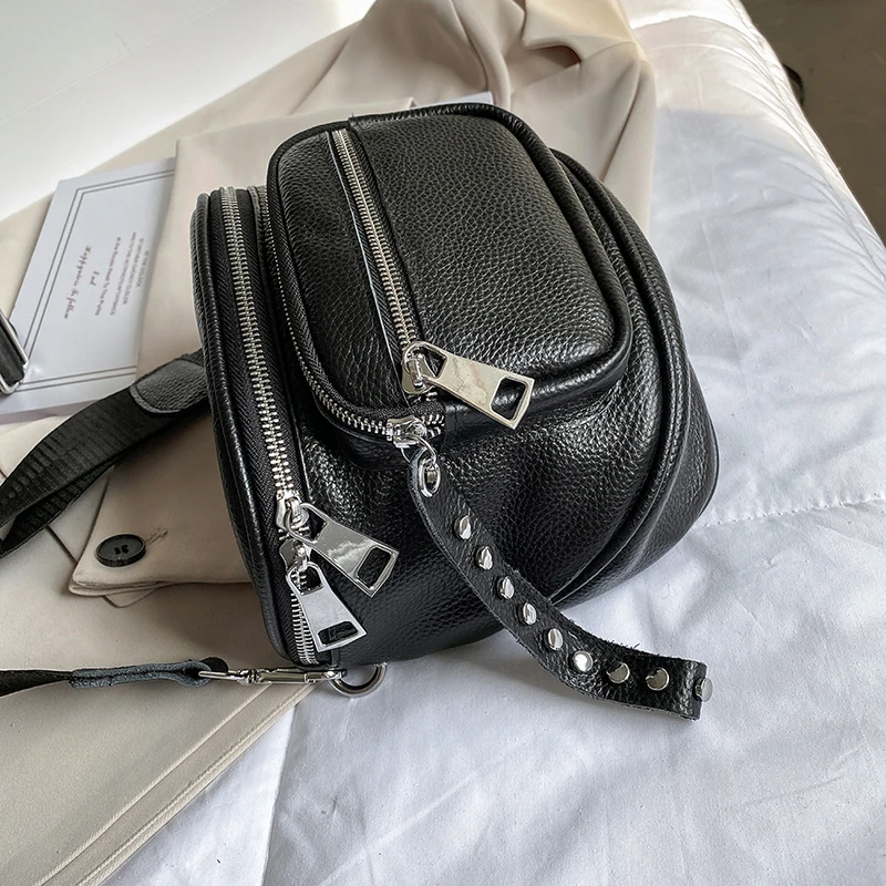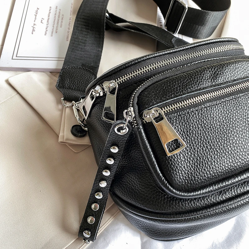 100% Cowhide Crossbody Bags Women Black Shoulder Handbags Bag Travel Saddle Bag