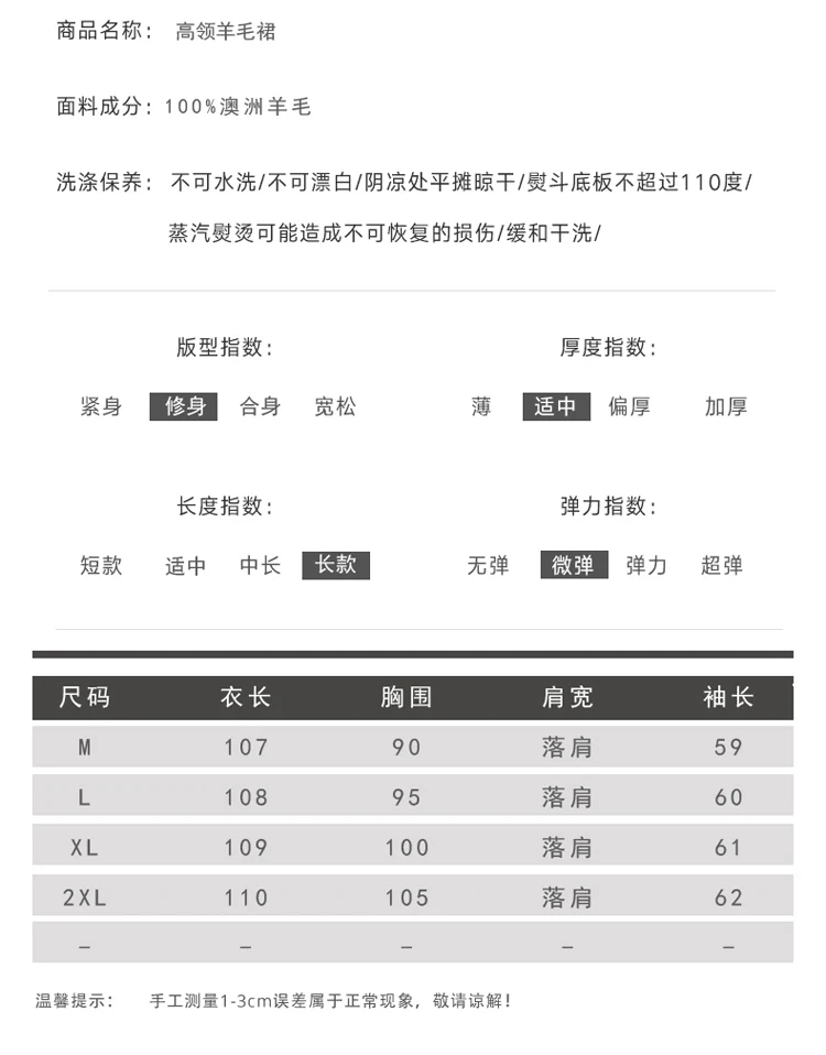 product size M size; bust 90 cm, length 105 cm, sleeve length 57 cm L size; bust 95 cm, length 106 cm, sleeve length 58 cm XL size; bust 100 cm, length 107 cm, sleeve length 59 cm XXL size; bust 105 cm, length 107 cm, sleeve length 60 cm Note: There will be an error of 1-3 cm due to the different ways of manually measuring the product. Please understand, thank you