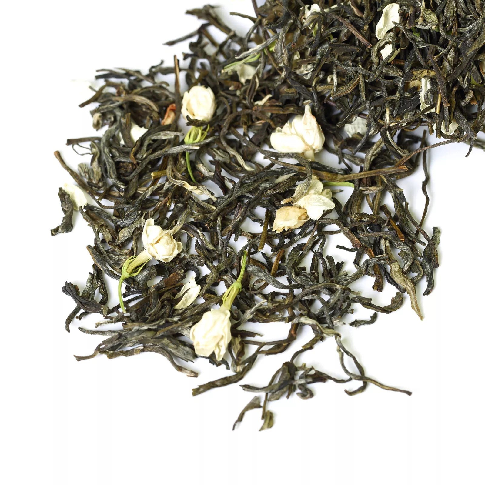 The tea buds are harvested in the early spring and stored until the late summer when fresh jasmine flowers are in bloom. Jasmine flowers are picked in the late afternoon when the small petals are tightly closed. In the early evening, when the flowers begin to open, the tea is blended with Jasmine flowers and stored overnight. During the night jasmine flowers open, bloom and release their fragrance into the tea. It takes over four hours for the tea to absorb the fragrance and flavor of the jasmine blossoms. This scenting process is repeated for as many as six times. The result is a very smooth, flavorful green tea with a gentle hint of Jasmine, refreshing and energising.