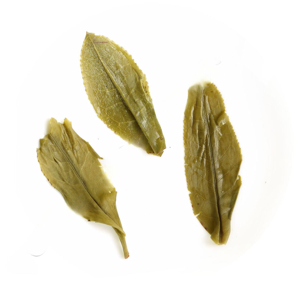 Liu An Gua Pian is considered one of China's top ten famous teas. This tea is in lamellar shape that resembling the seeds of sunflower, hence named 'melon seeds slice'. The name 'melon seeds slice' is now simplified as 'melon slice'. The fresh tea leaves picked to produce melon slice are much different from that for other famous teas. After plucking one bud with two or three leaves from the tea plant, the producers separate the full-blown leaves from the tender leaves in time. Following that, both leaf tip and stalk are cut from the full-blown leaves. So each single leaf of melon slice has no bud nor stalk.