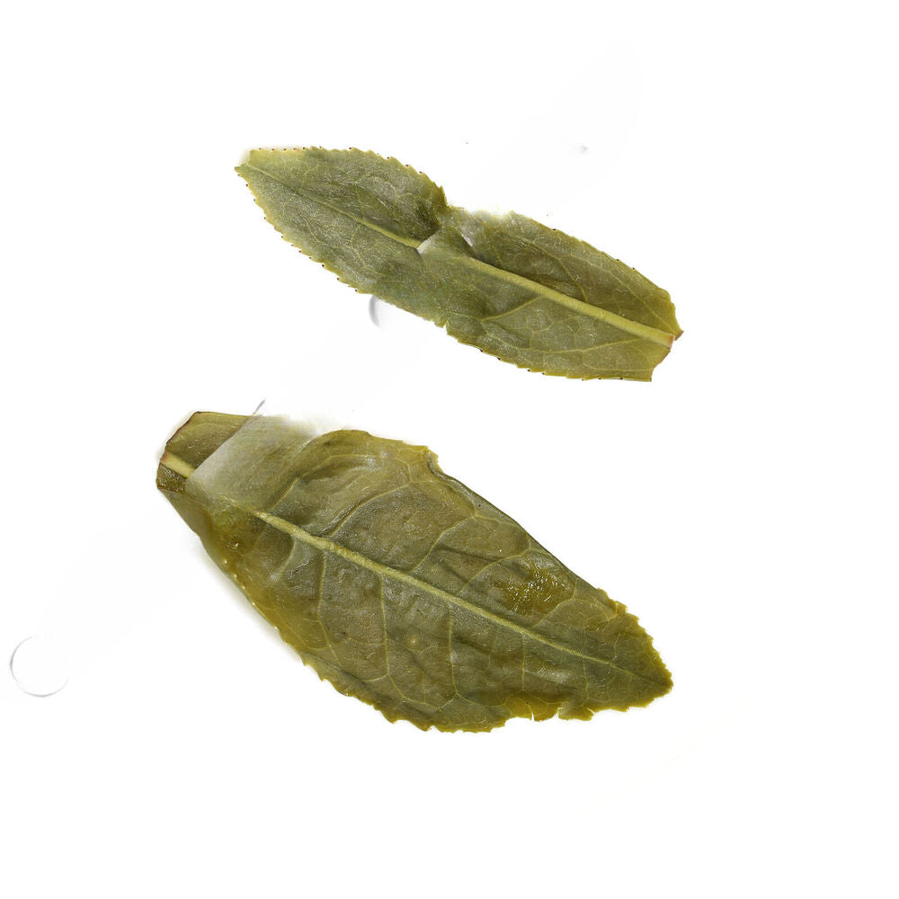 The fresh tea leaves picked to produce melon slice are much different from that for other famous teas. After plucking one bud with two or three leaves from the tea plant, the producers separate the full-blown leaves from the tender leaves in time. Following that, both leaf tip and stalk are cut from the full-blown leaves. So each single leaf of melon slice has no bud nor stalk. Carefully groomed leaves are then pan fired at a slow bake over a charcoal fire and frequently turned to impart a delicate hint of smokiness. Liu An melon slice is curled at leaf edge and rich green in color with white frost on the surface. The aroma is fresh, high and long lasting. The taste is mellow, sweet and refreshing.
