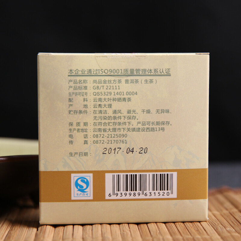 Product name: Big Snow Mt. 2017 Yunnan Xiaguan Gold Silk Raw Pu-erh Puer Pu'er Brick Tea 100g
