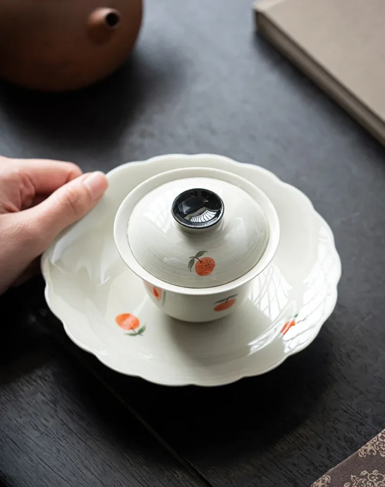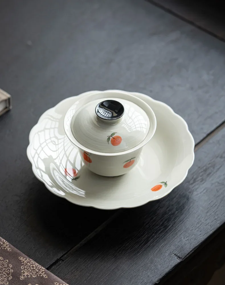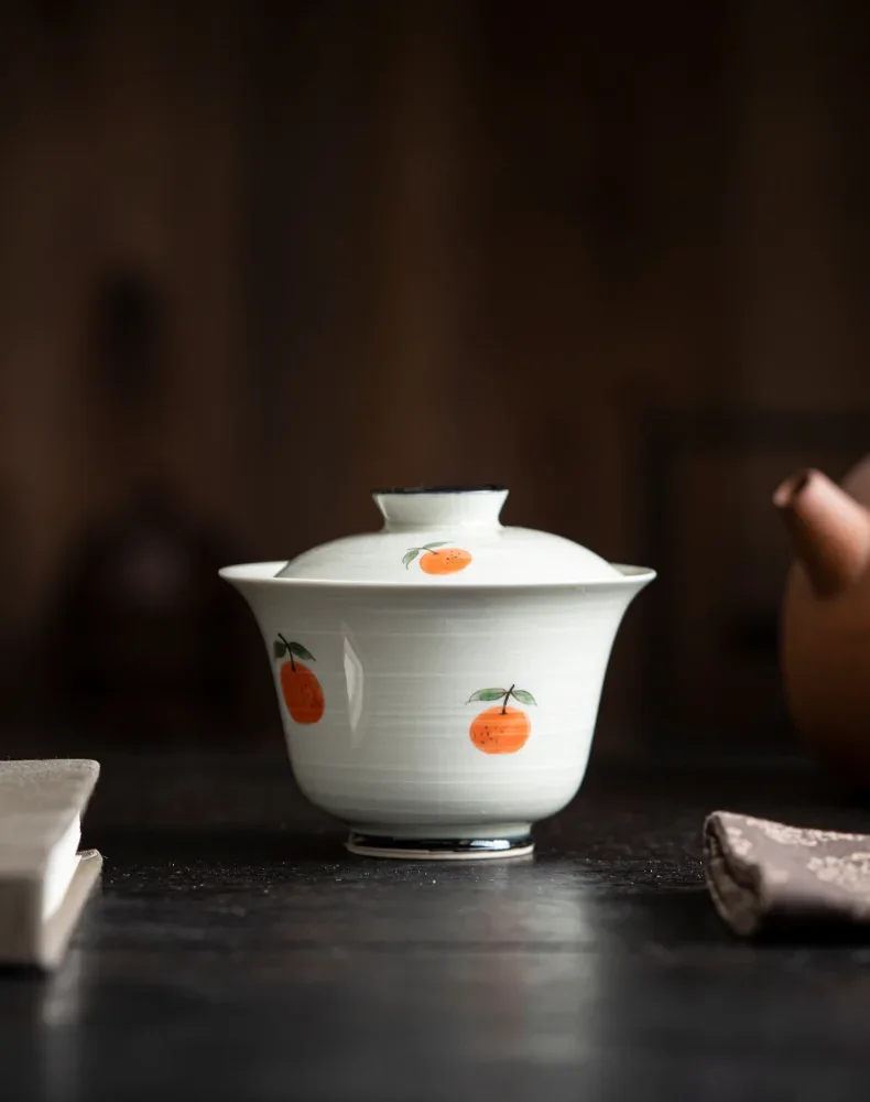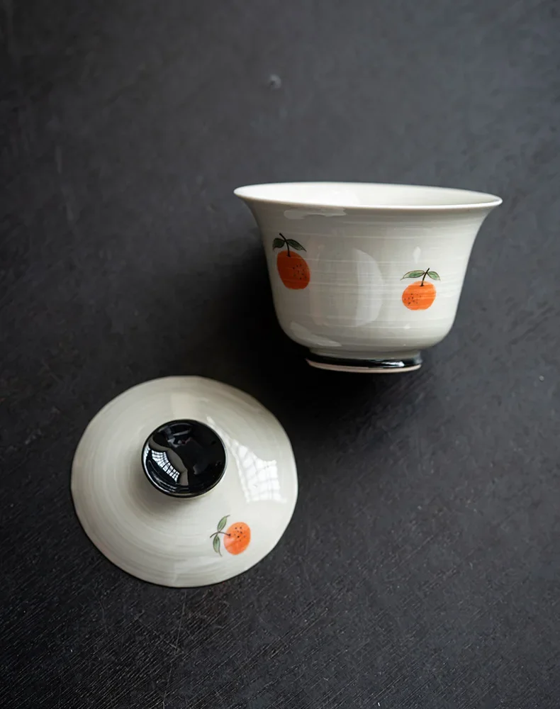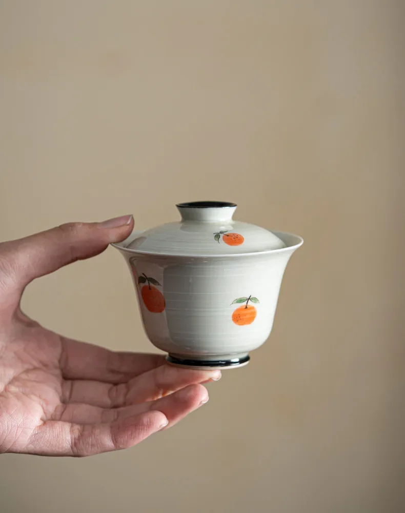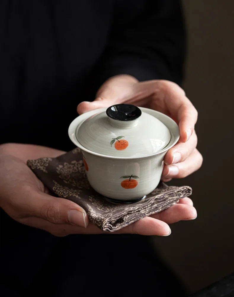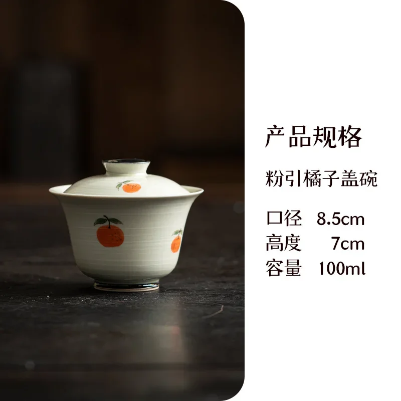 100ml Japanese Powder Plant Ash Tea Tureen Pure Hand Painted Persimmon Cover Bowl Chinese Tea Making Ceramic Gaiwan Kung Fu Tea
