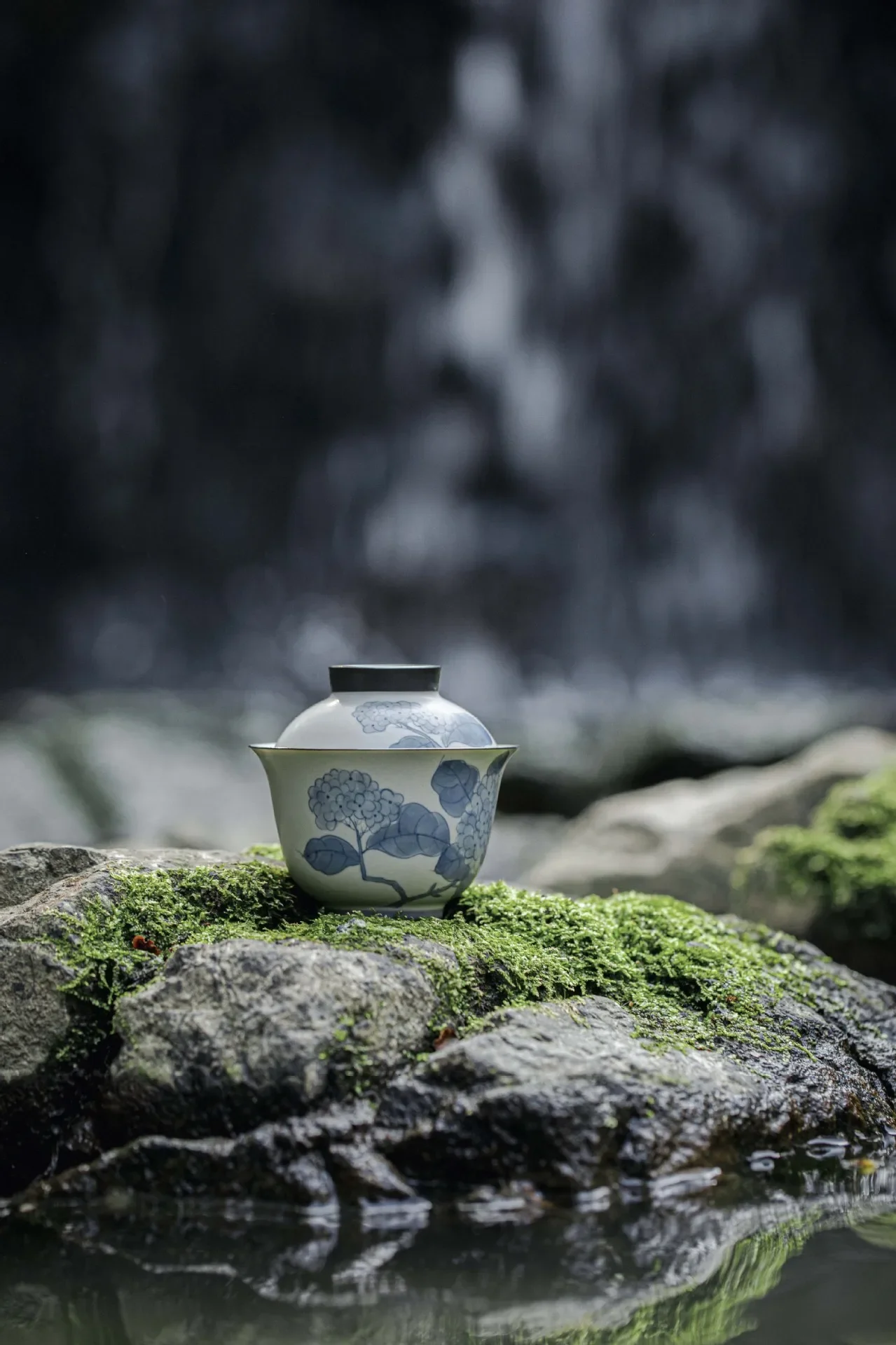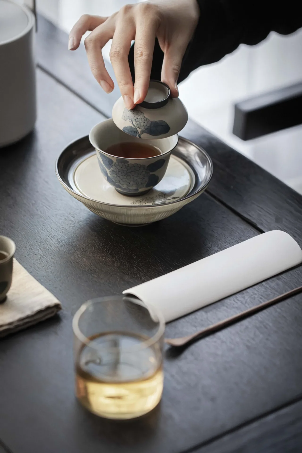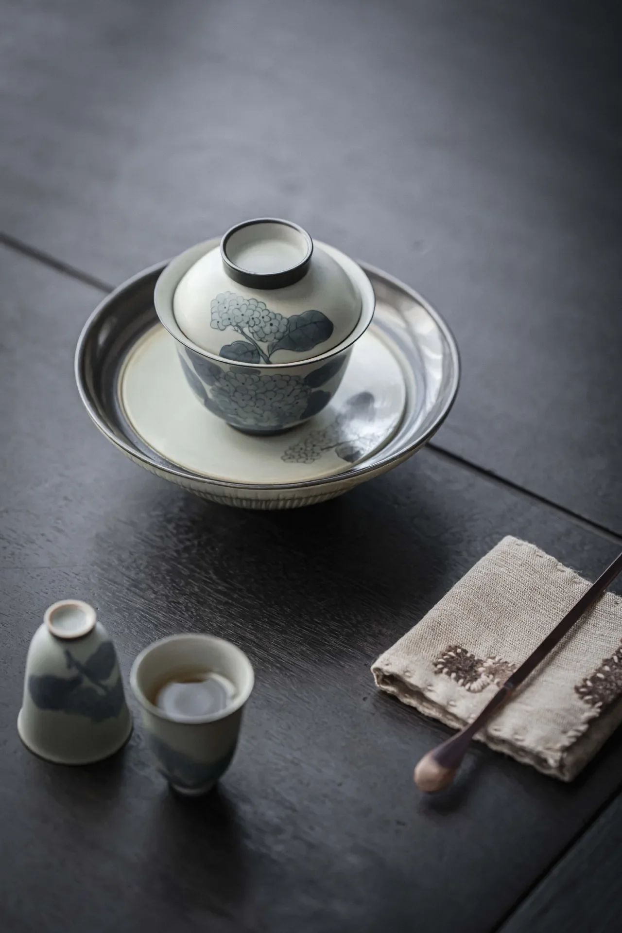 110ml Antique Hand-painted Hydrangea Ceramic Tea Tureen Literati Tea Maker Cover Bowl with Lid Chinese Gaiwan Kung Fu Tea Set