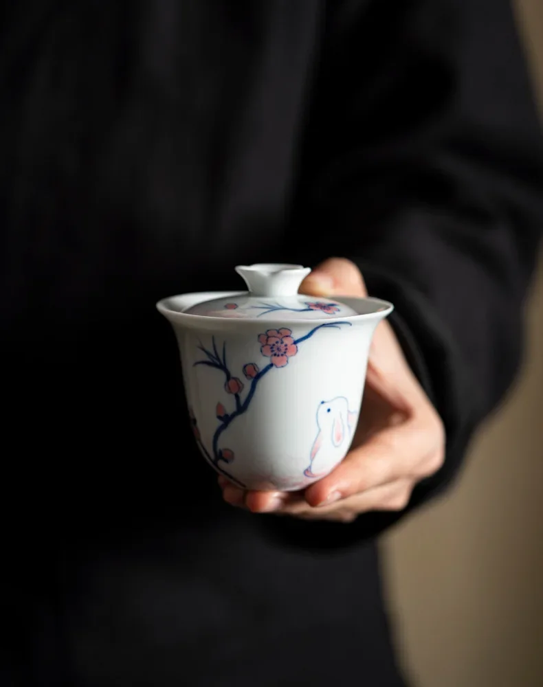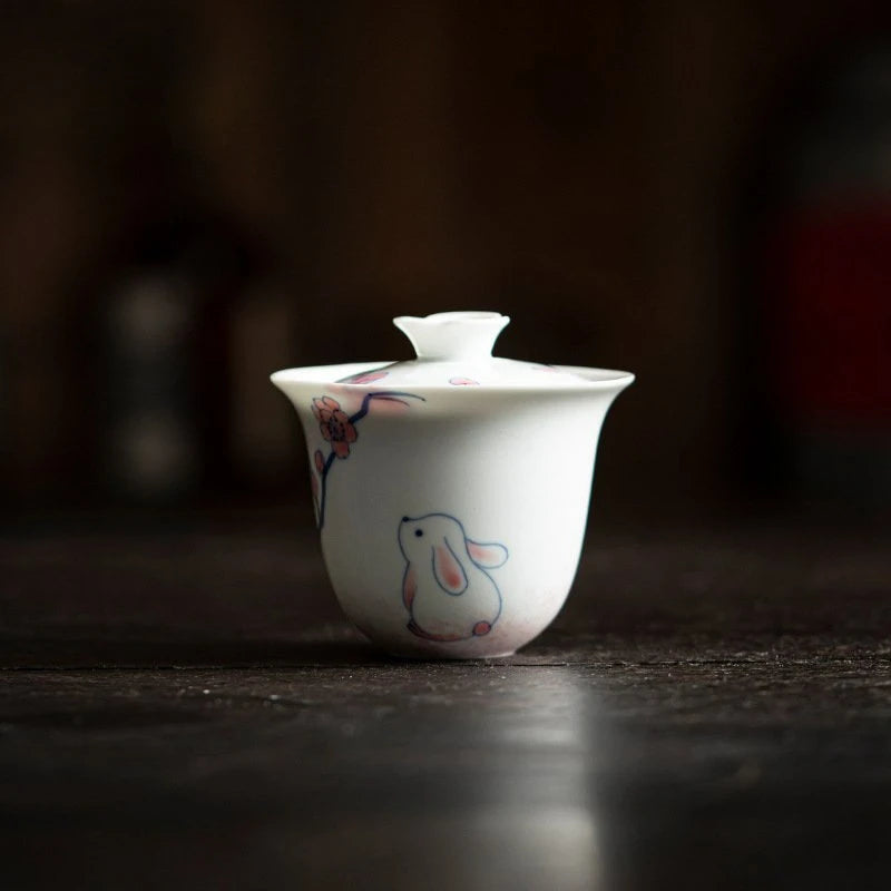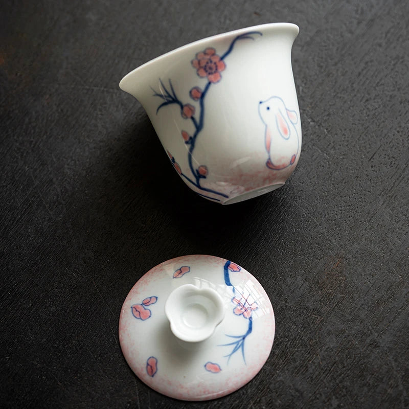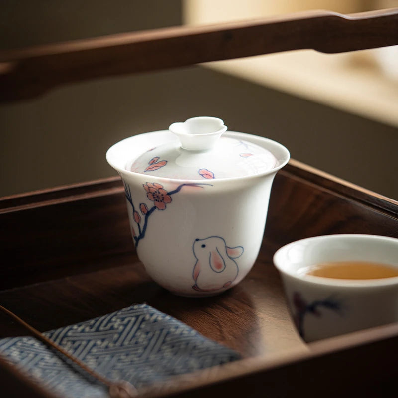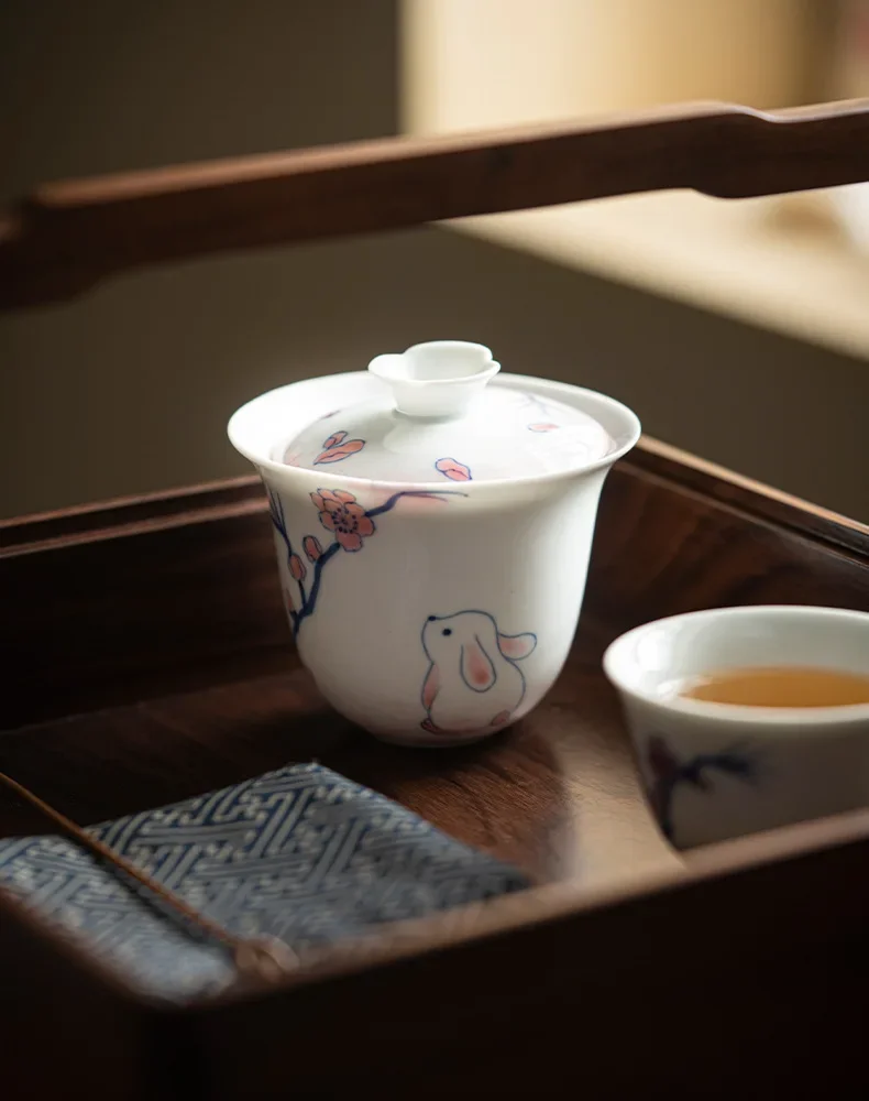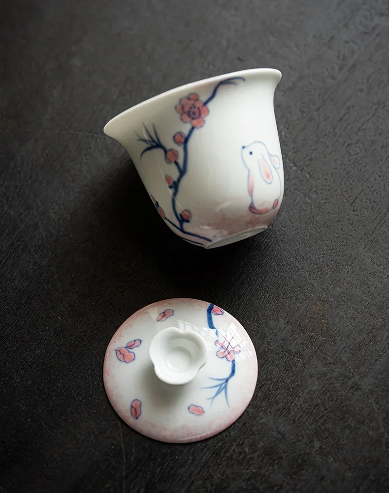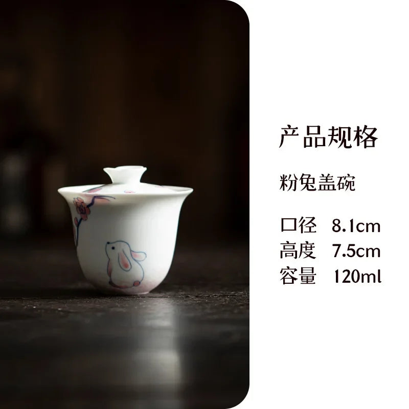 120ml Pure Hand-painted Powder Rabbit Ceramic Cover Bowl Underglaze Color Tea Bowl Ladies Tea Making Anti Scalding Gaiwan Teaset