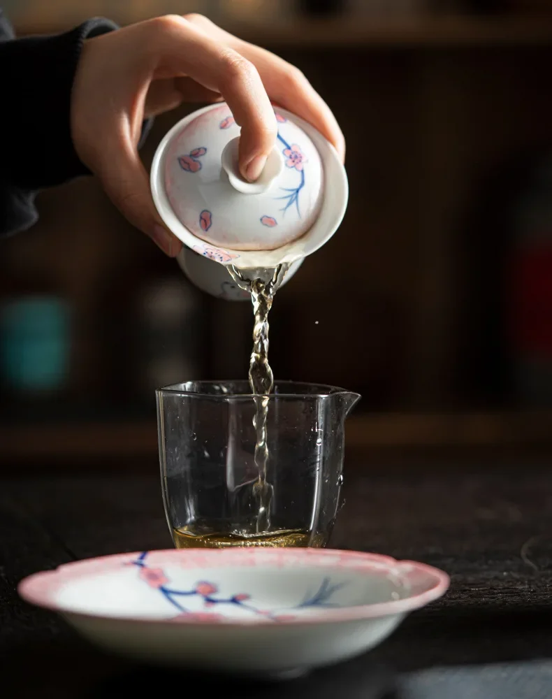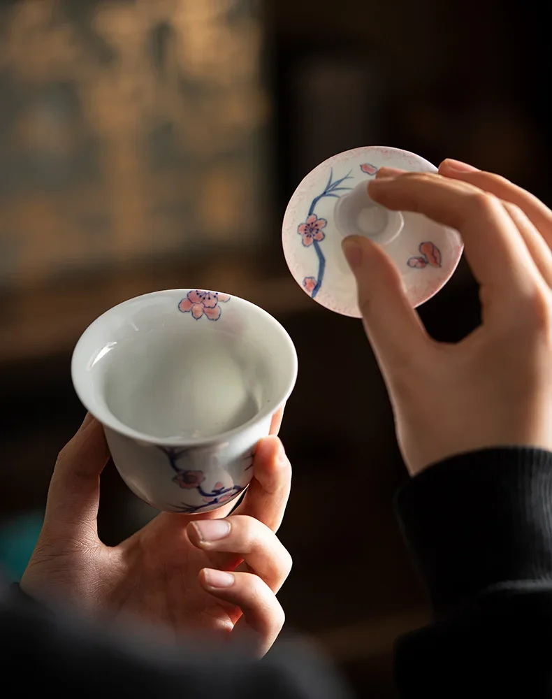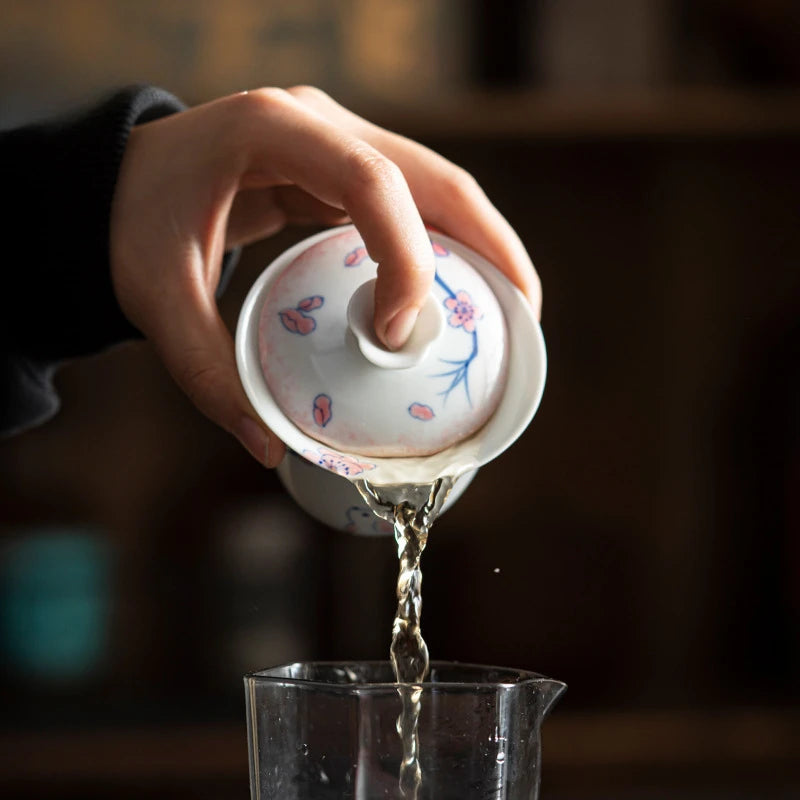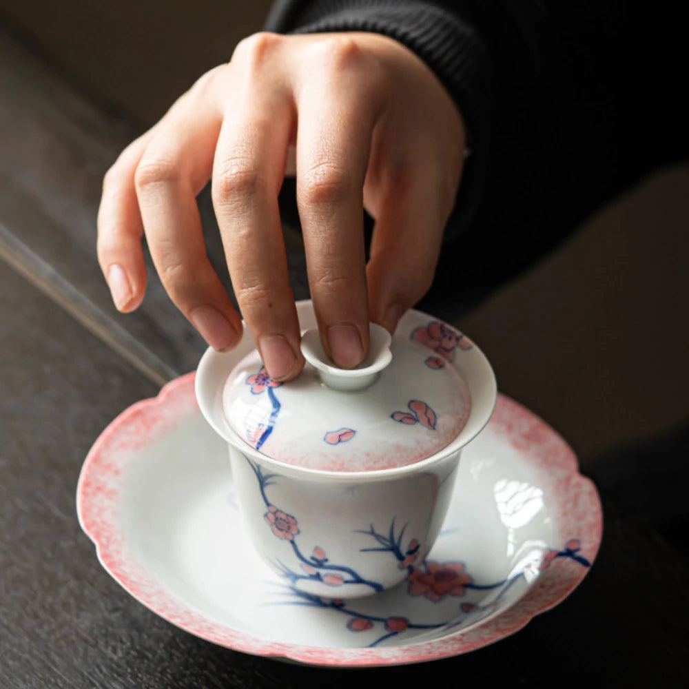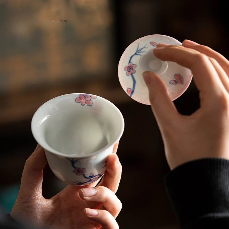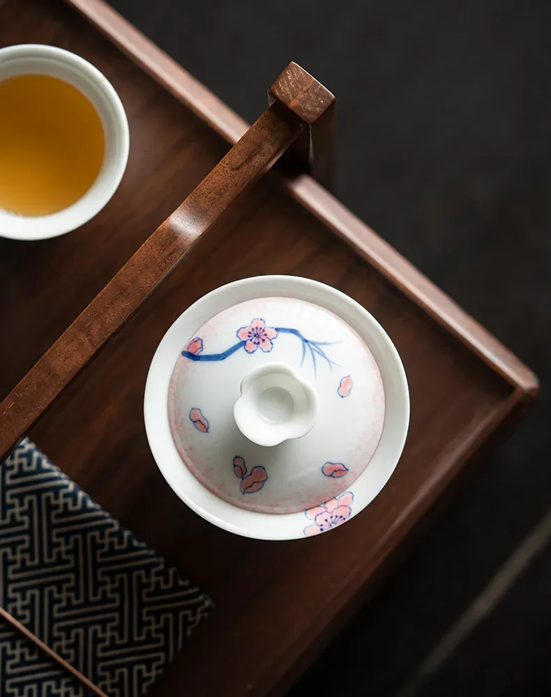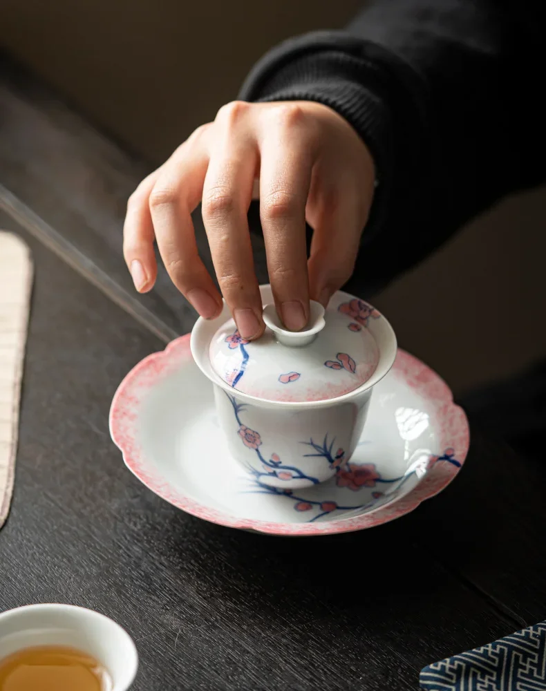 120ml Pure Hand-painted Powder Rabbit Ceramic Cover Bowl Underglaze Color Tea Bowl Ladies Tea Making Anti Scalding Gaiwan Teaset