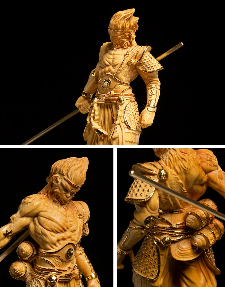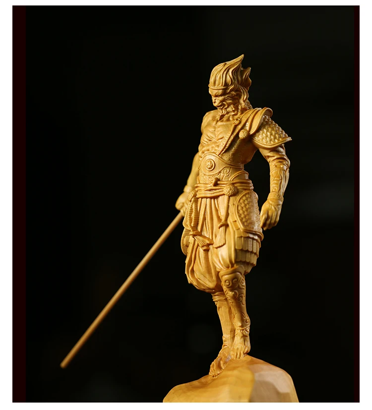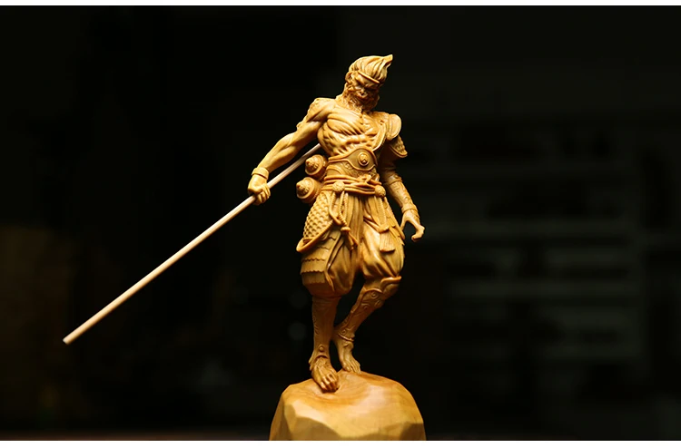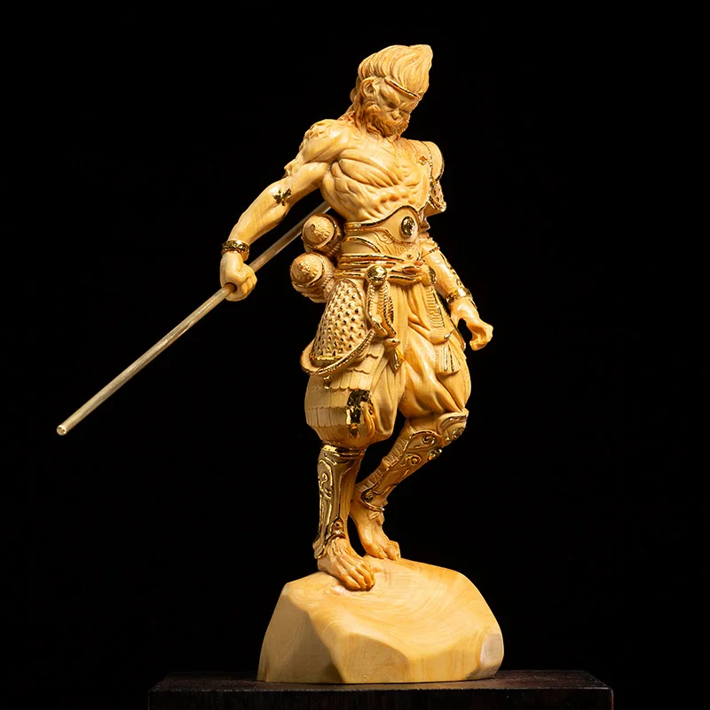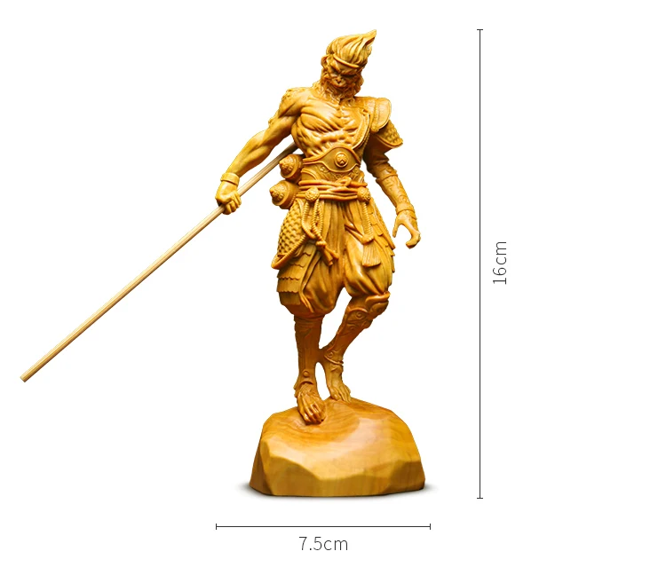 12CM 16CM Boxwood Sun Wukong Sculpture Monkey King Feng Shui Wooden Figure Solid Wood Buddha Statue Chinese Home Decor