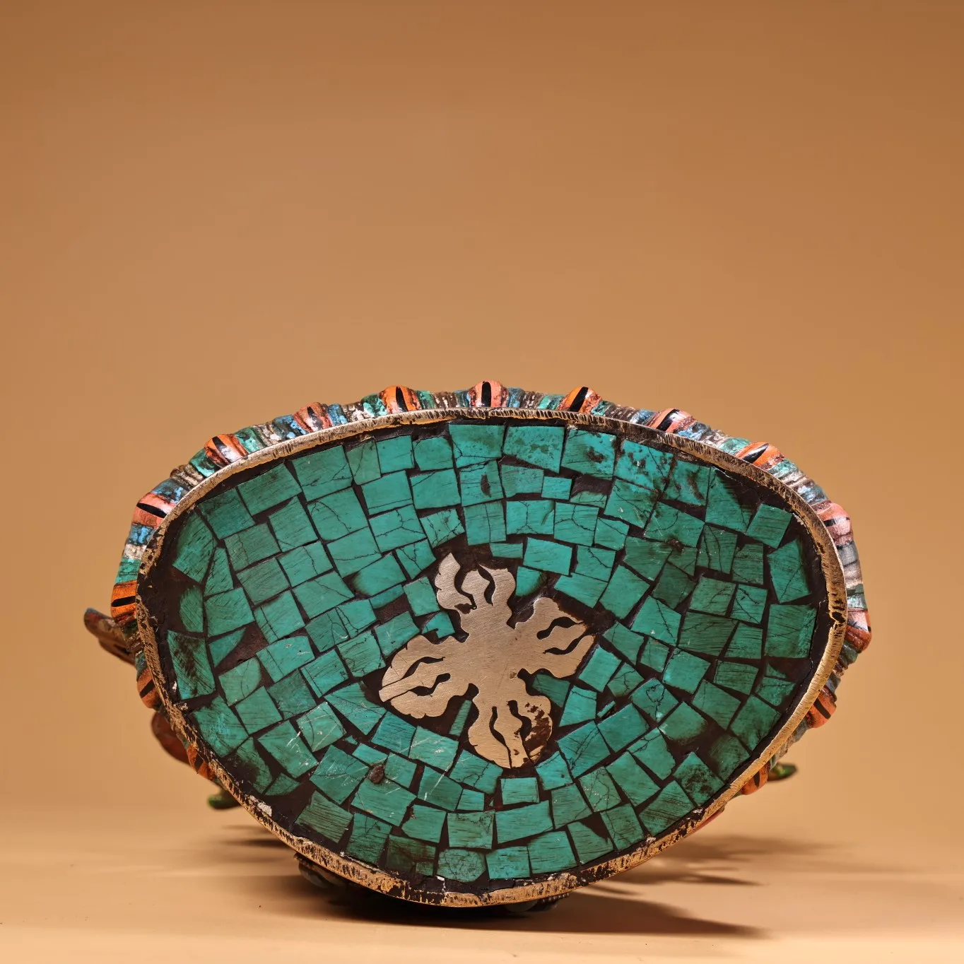 Materials: Old Bronze Painted Outline in gold Mosaic Gem Turquoise