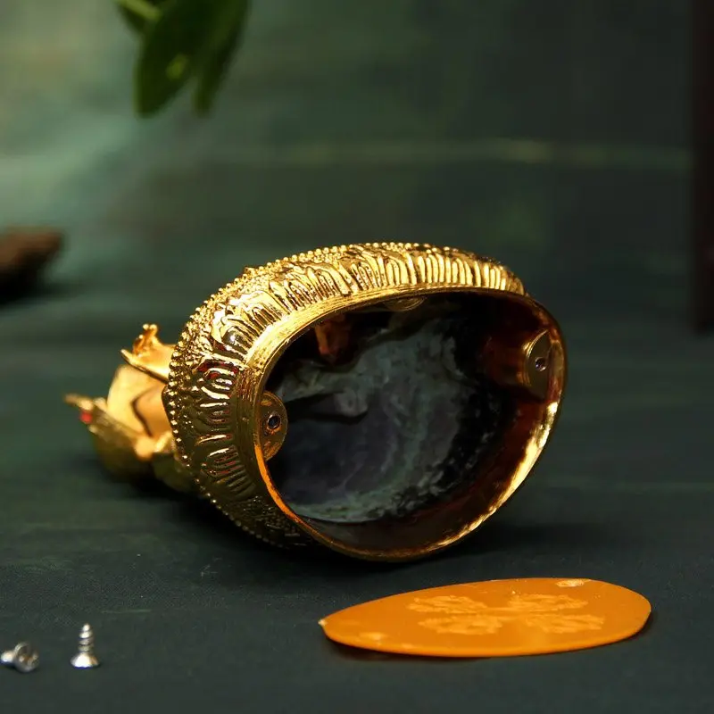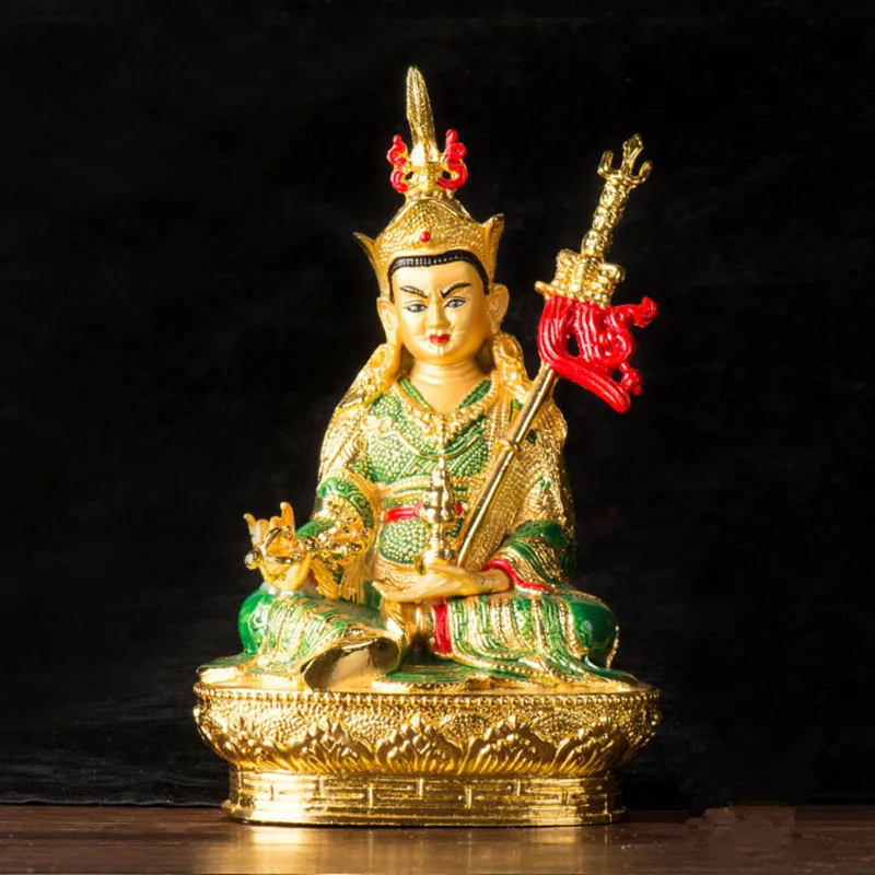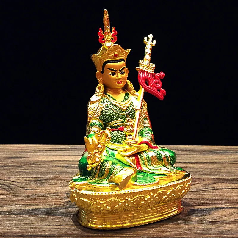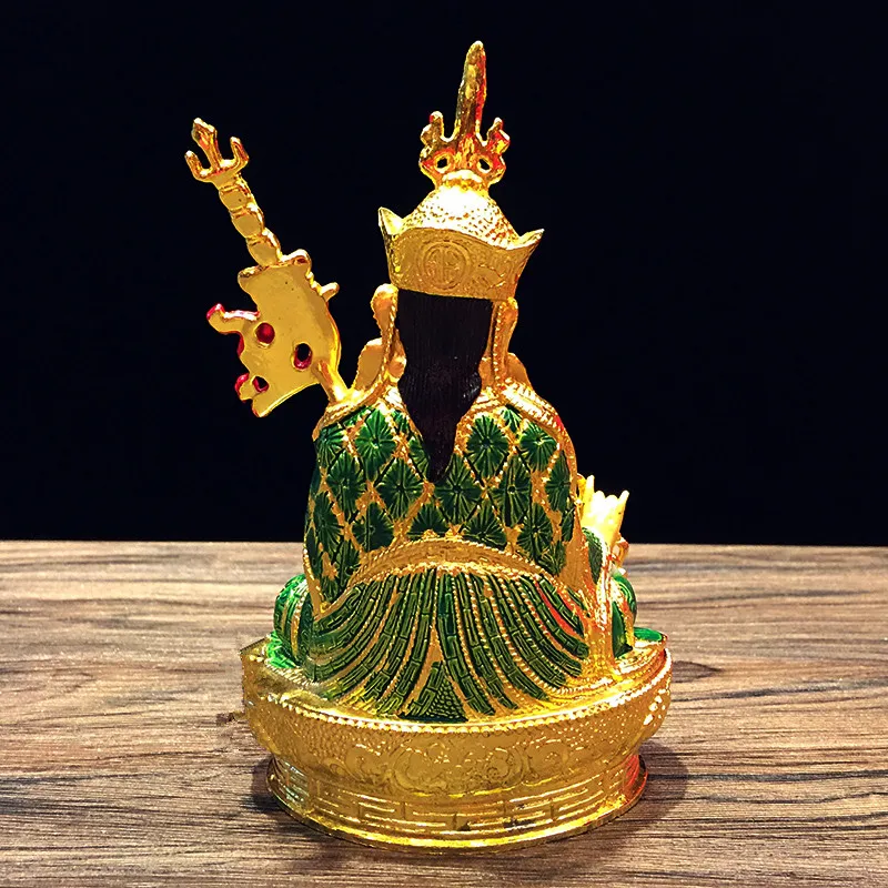 14.8cm Gilding Craft Alloy Metal Buddhist Padmasambhava Lotus Tibetan Talisman Efficacious Home Putting Decorations