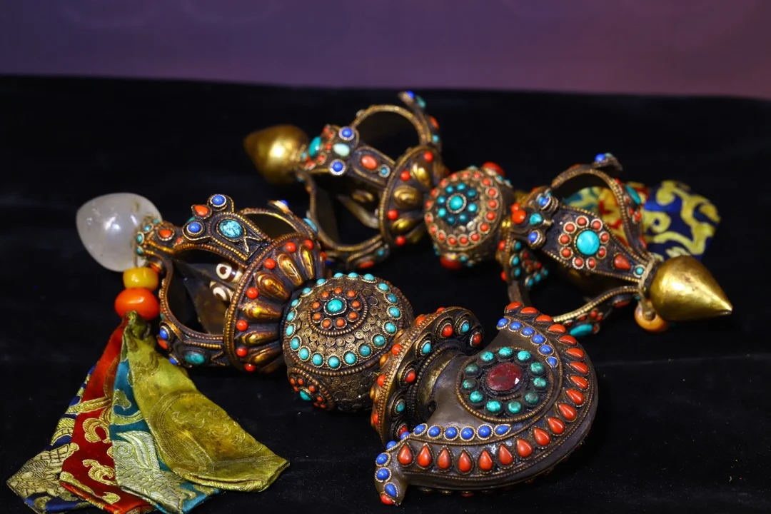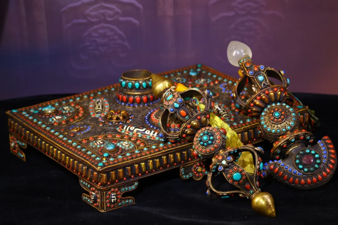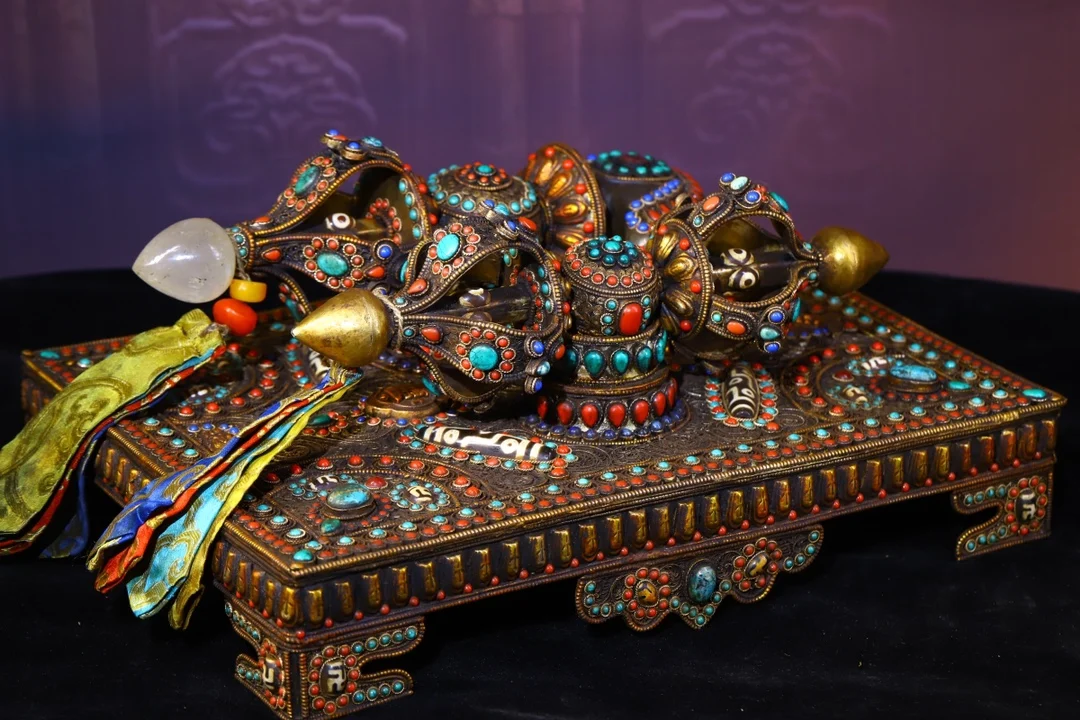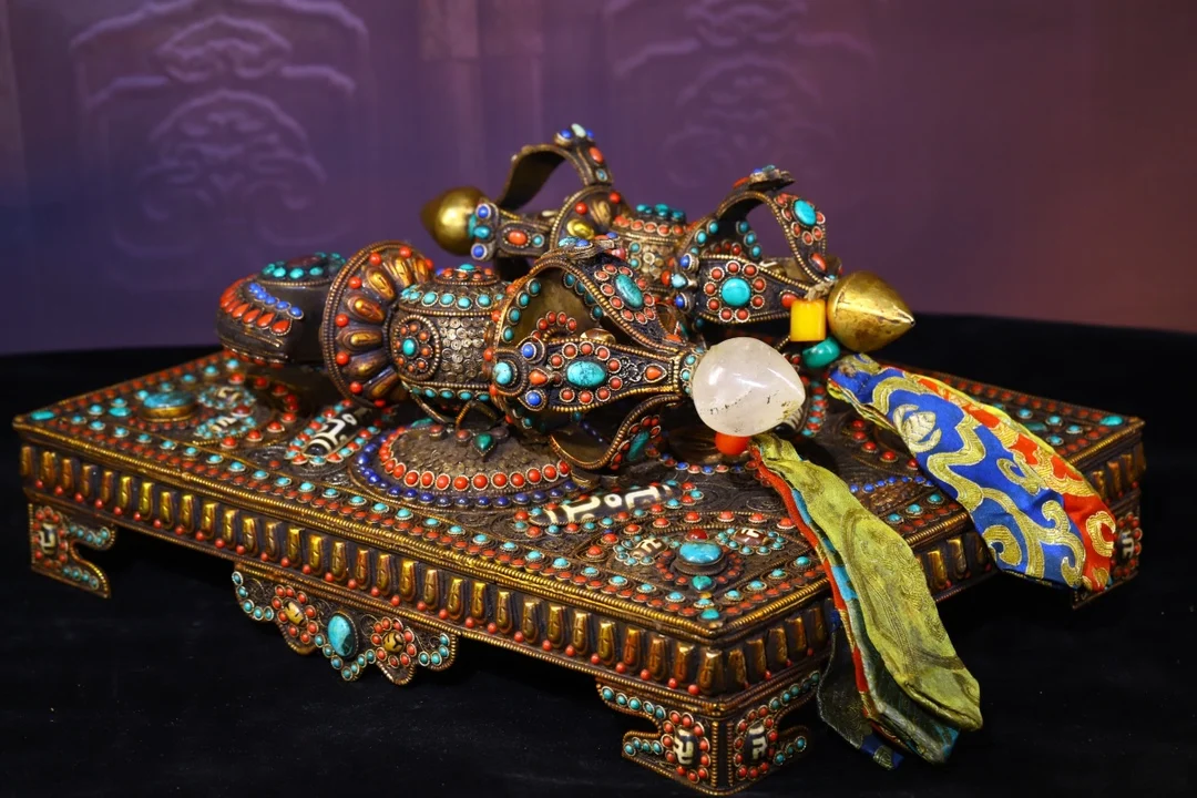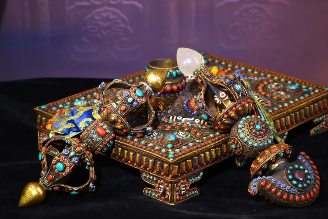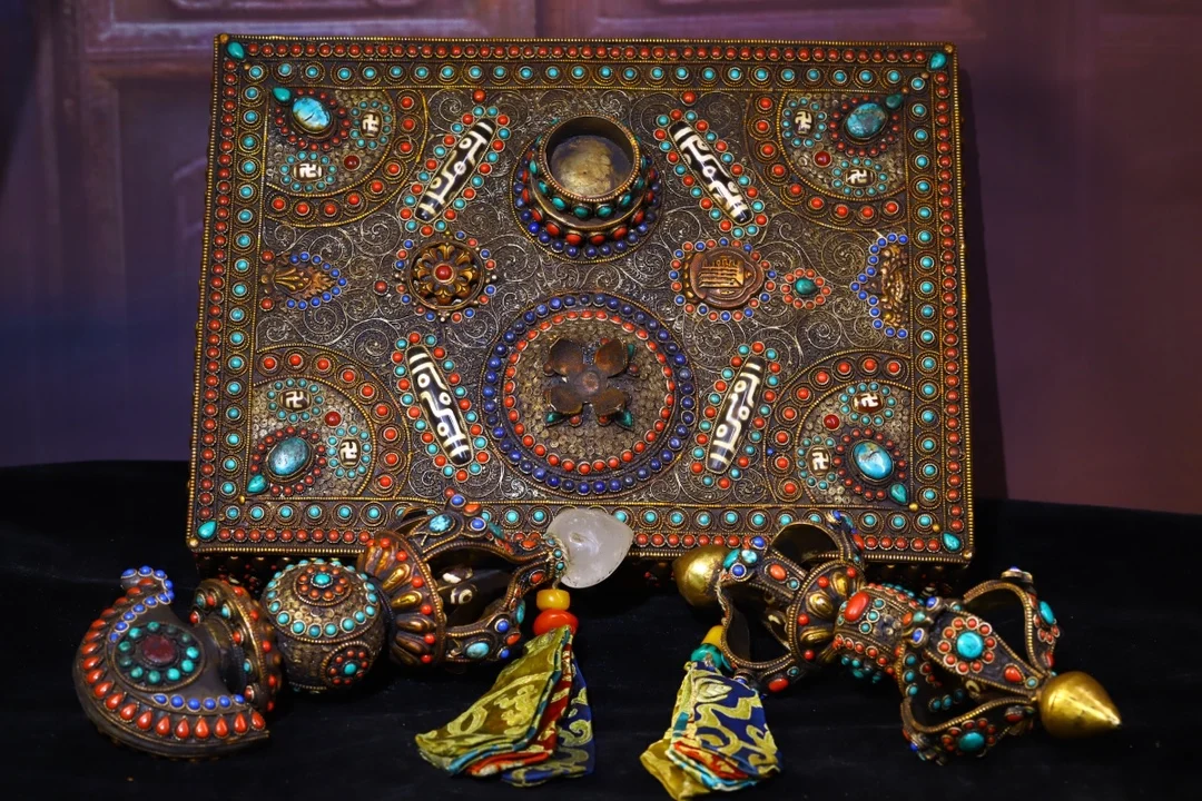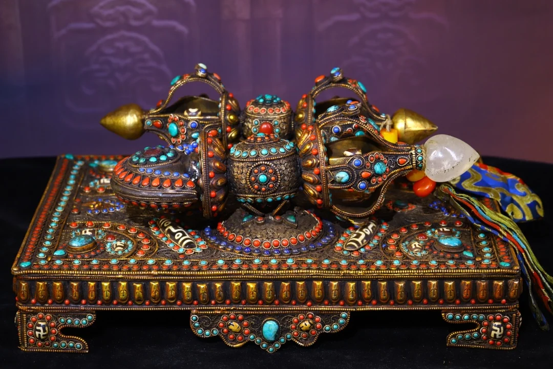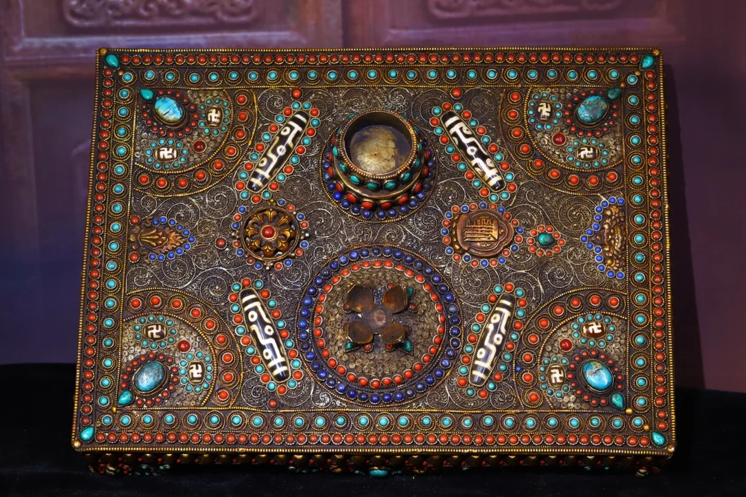 Materials: Old Tibetan silver Filigree mosaic crystal Gem Dzi Bead