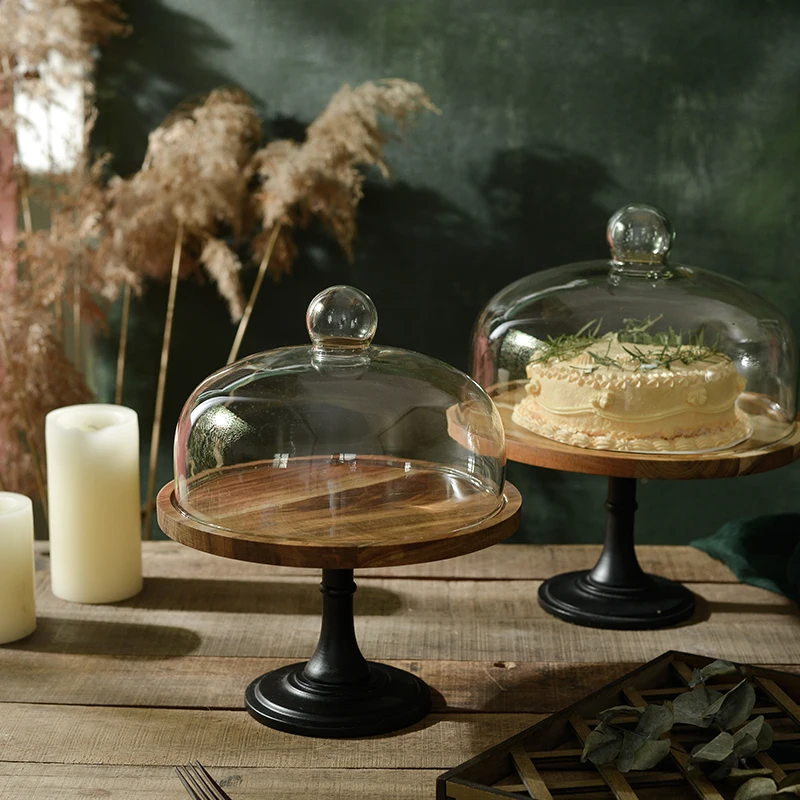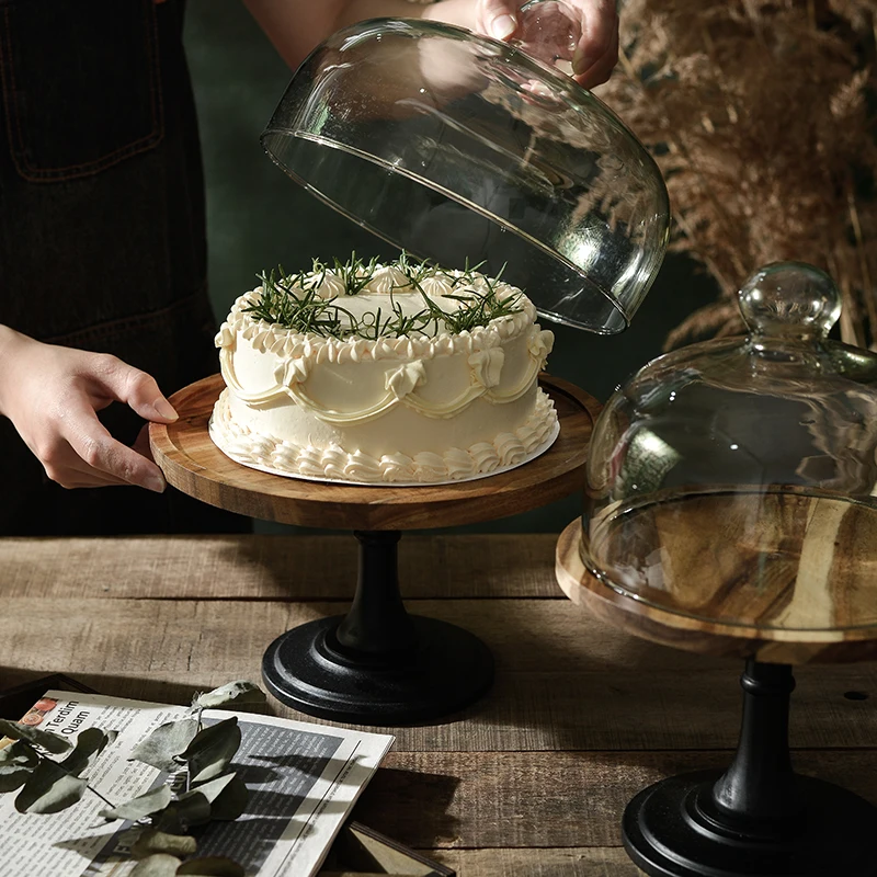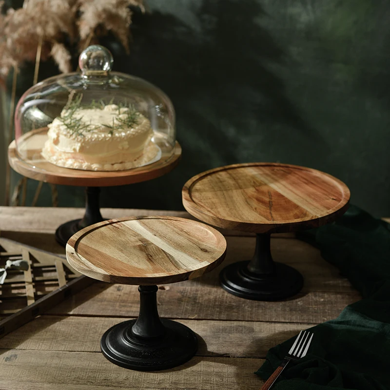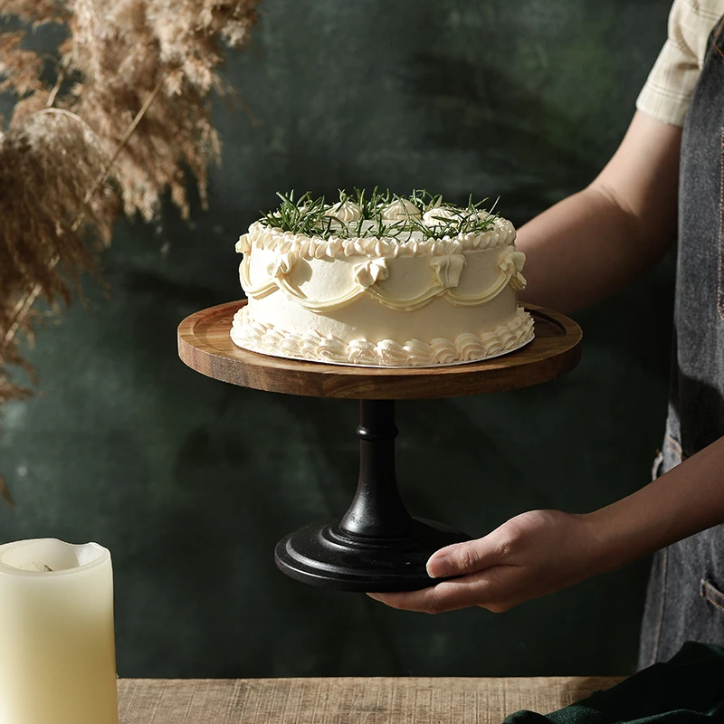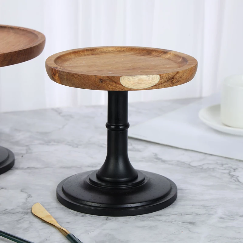 15/20/25/30cm Acacia Wood Cake Stand Wood Base with Black Stand Dessert Stand Cake Display Wedding Birthday Cupcake Holder