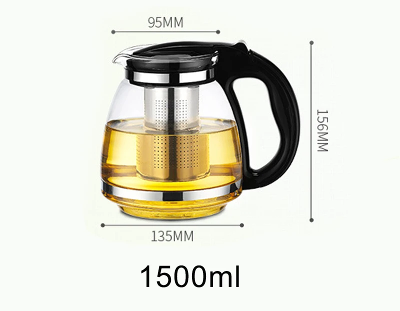 1500ml Heat-resistant glass tea pot kettle with 304 stainless steel infuser teapots for tea party heated container brewing