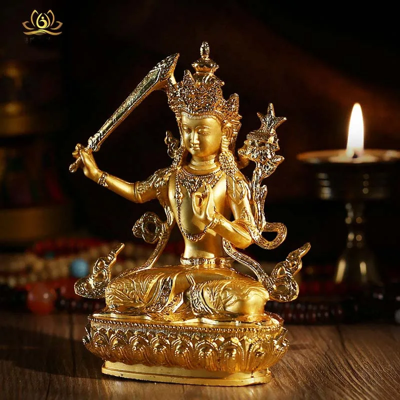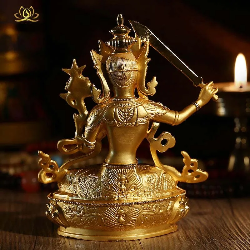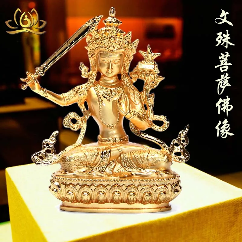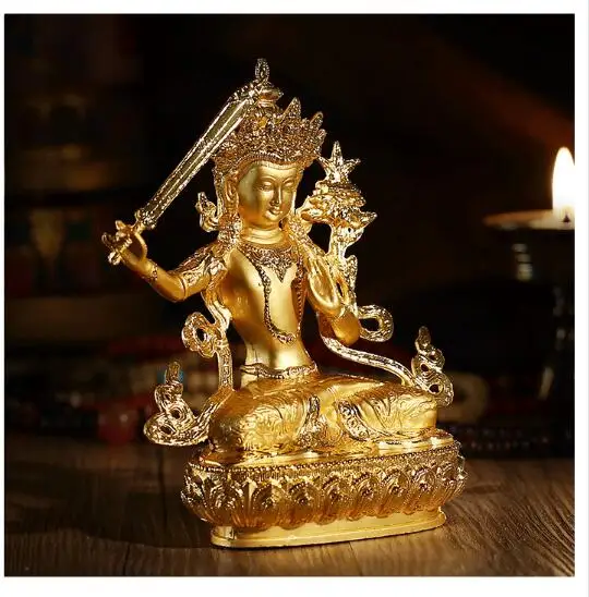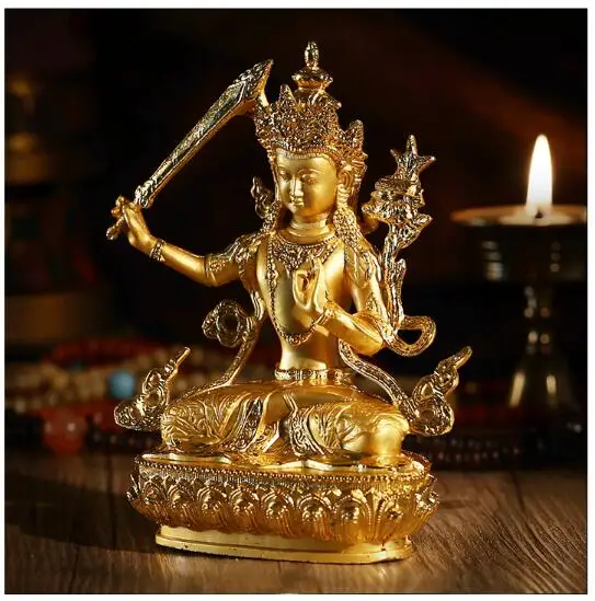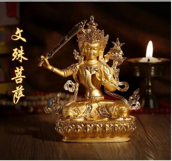 15cm tall Buddhism HOME efficacious Protection bless family Safe Gold-plated the Bodhisattva Manjusri Buddha brass statue