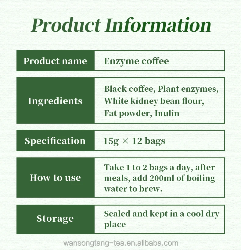 15g*12 Slimming Enzyme Coffee Natural Herbal Diet Bulletproof Coffee Healthy