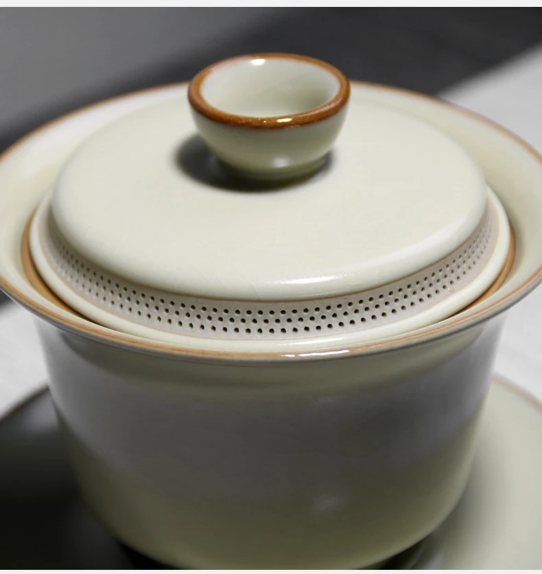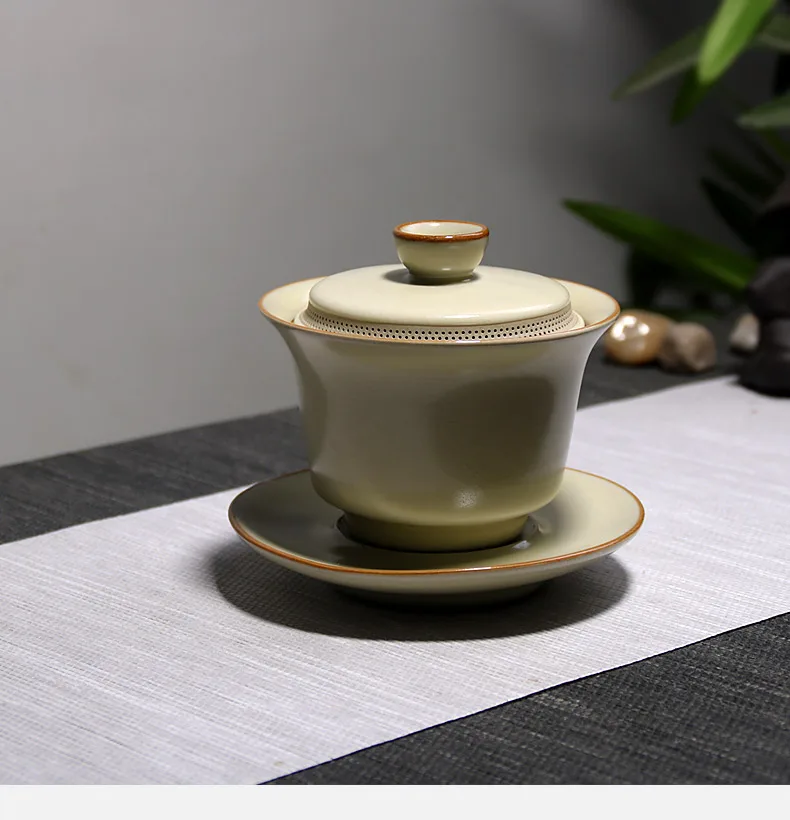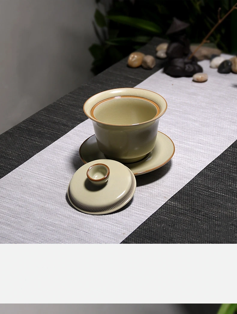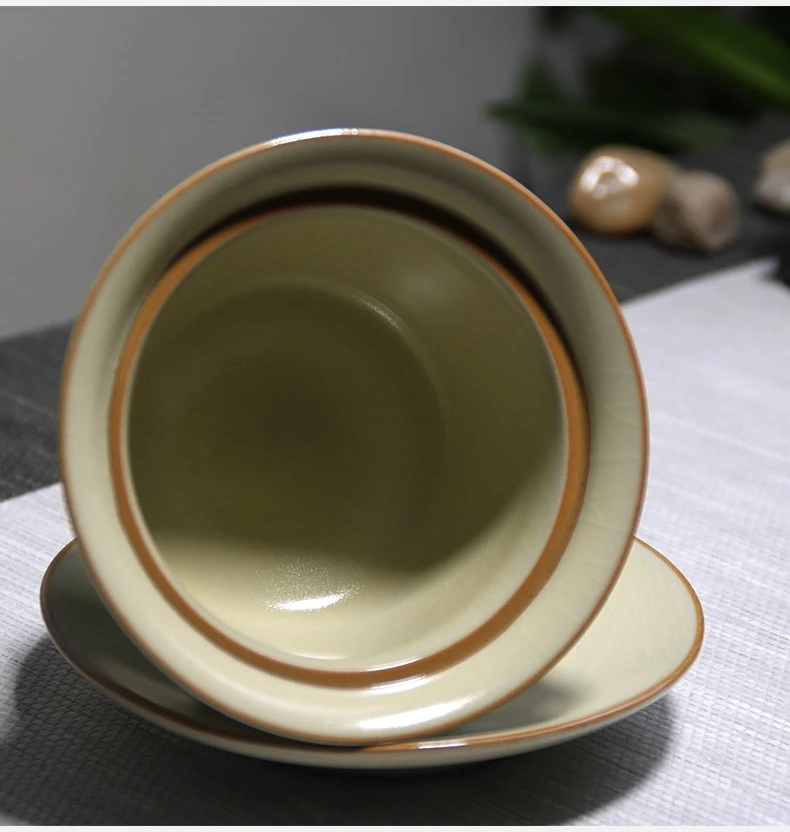 160ML Ru Kiln Gaiwan Tea Tureen Sancai Cover Bowl Single High-end Kungfu Tea Set Chinese Large Household Tea Bowl Tea Cup