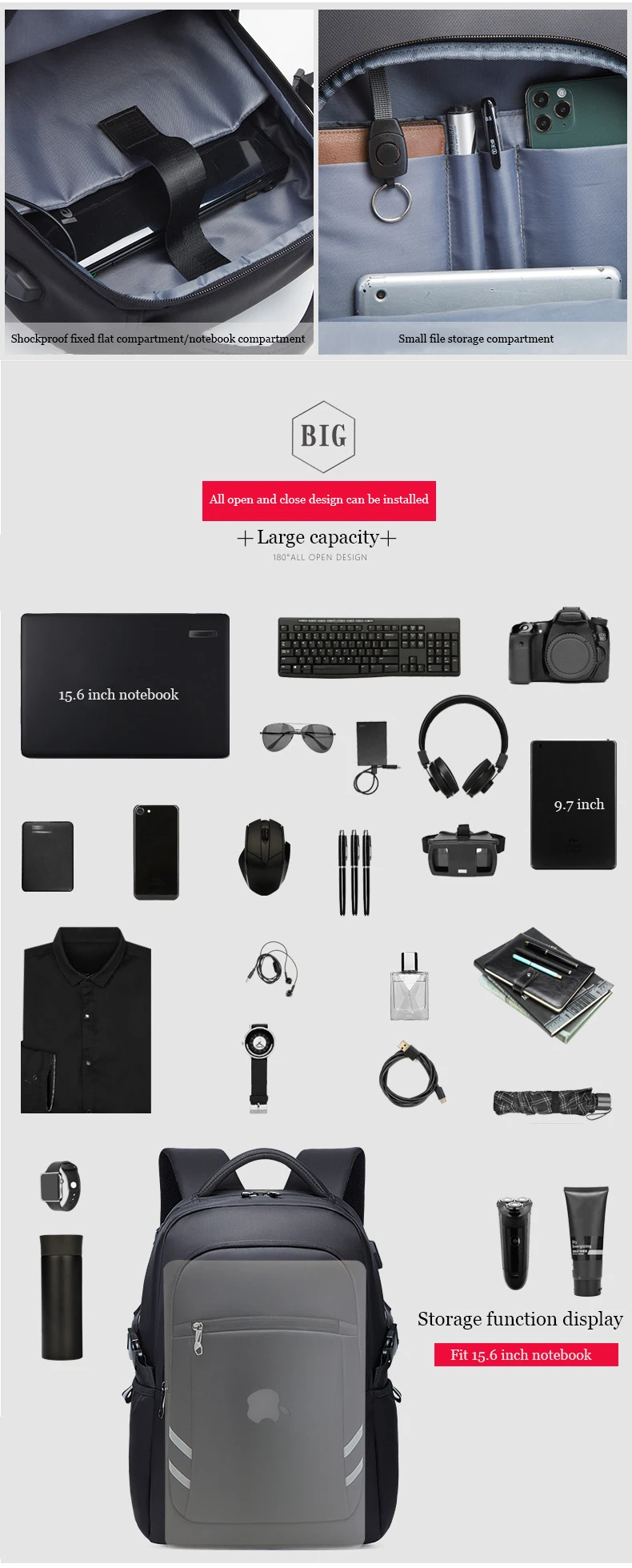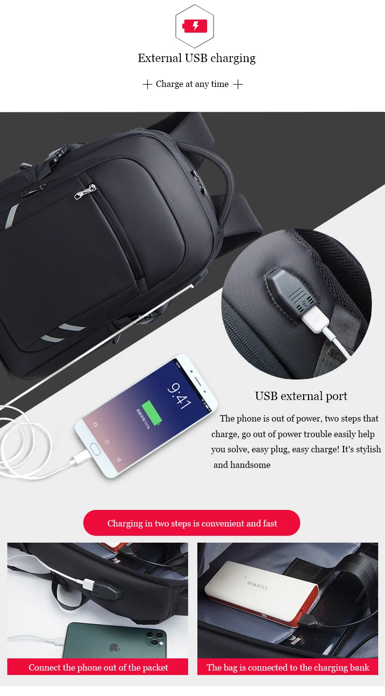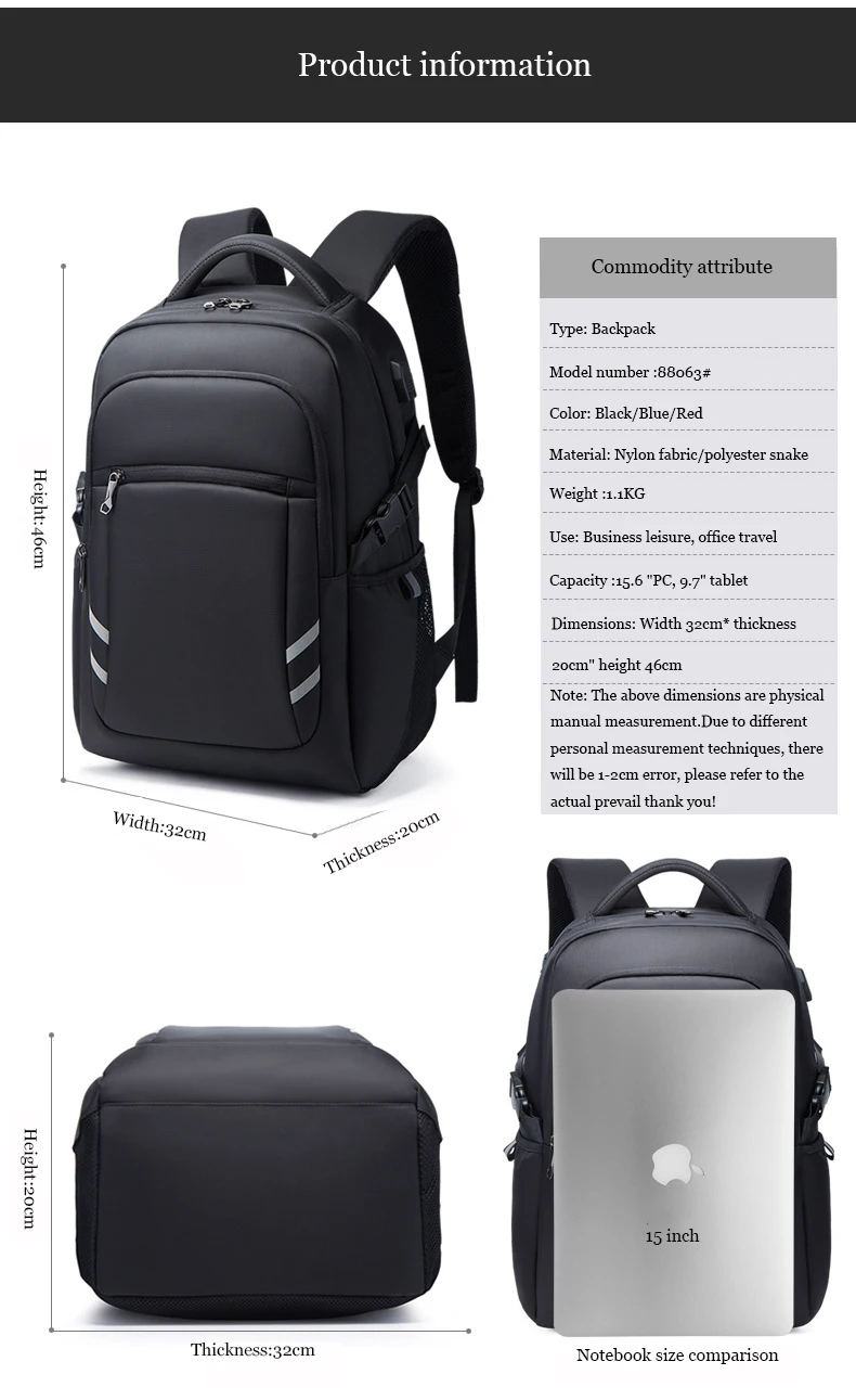17.3''Laptop Backpack For Men W/USB Port Bag High Quality Oxford Business Bag Computer Bag Leisure Travel Backpack For Students