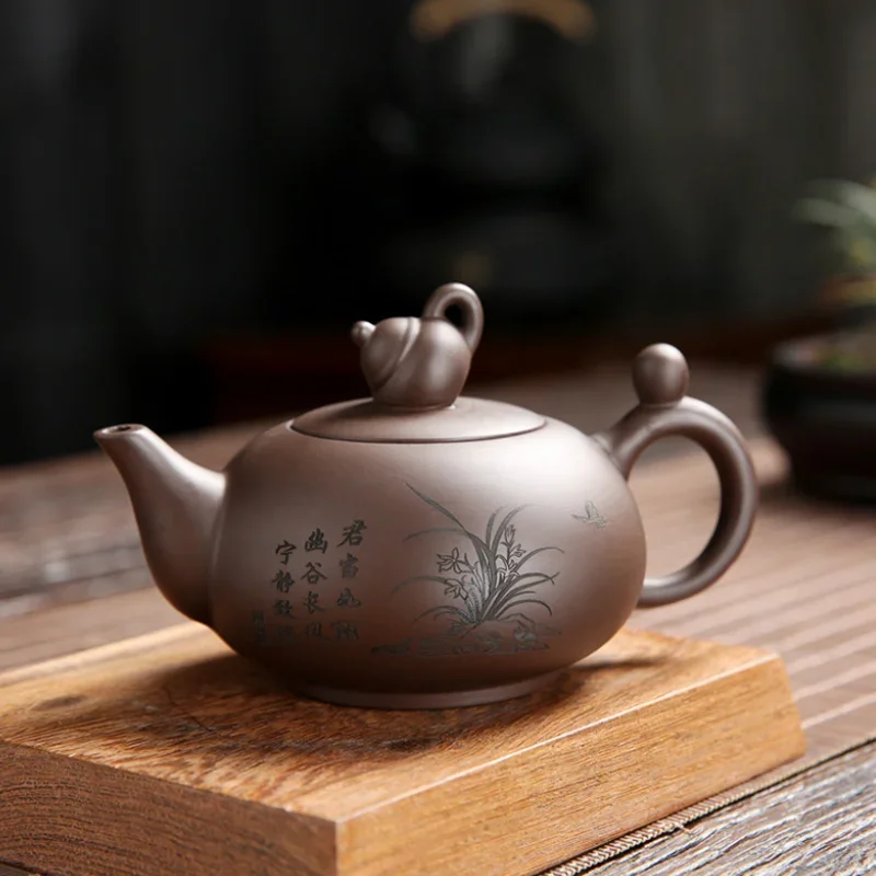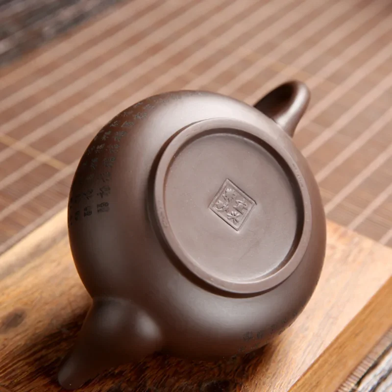 Exquisite Craftsmanship: Spout, twist beads, handle, three points in a line. Can filter tea residue. The teapot is round and full.The zisha pot has a seal on the bottom.