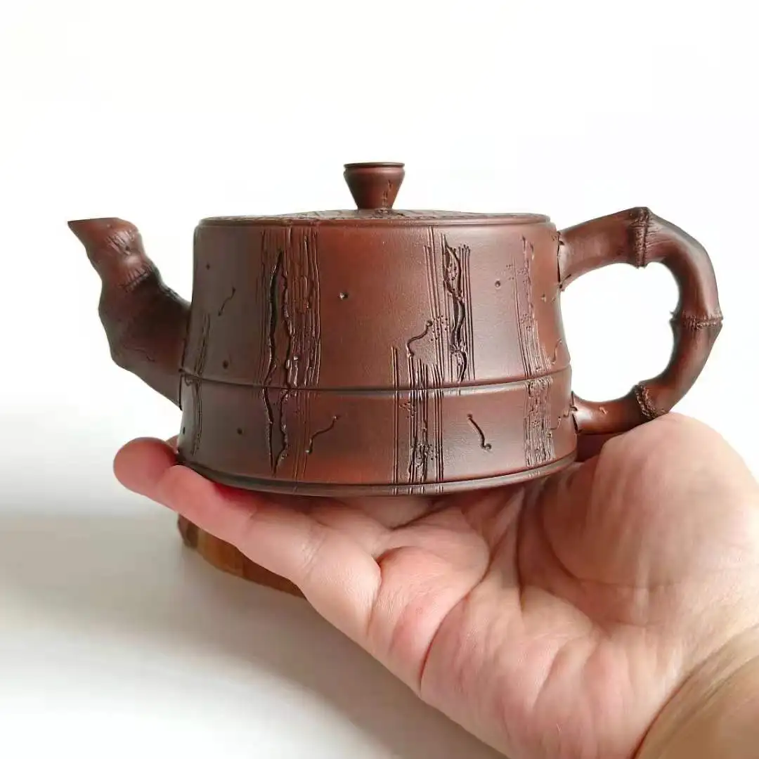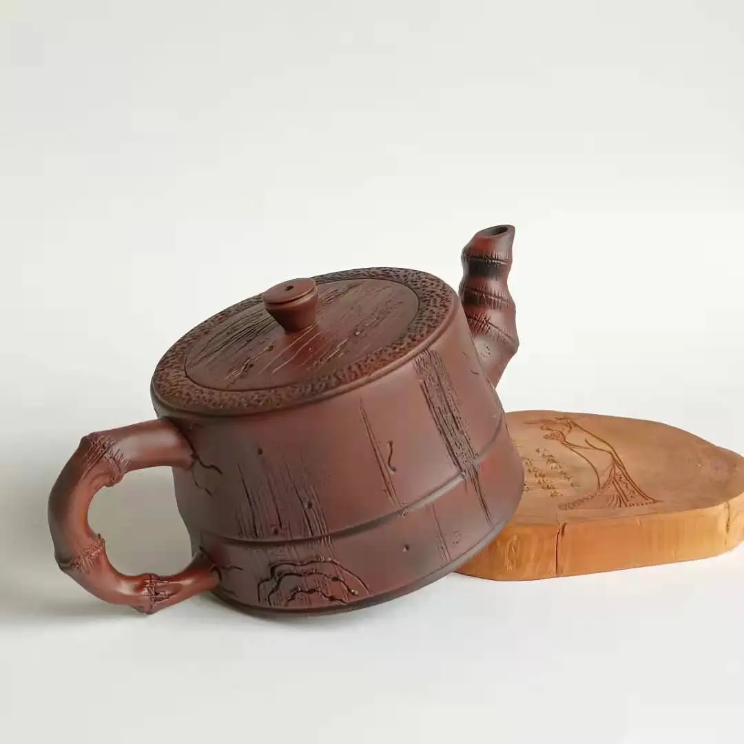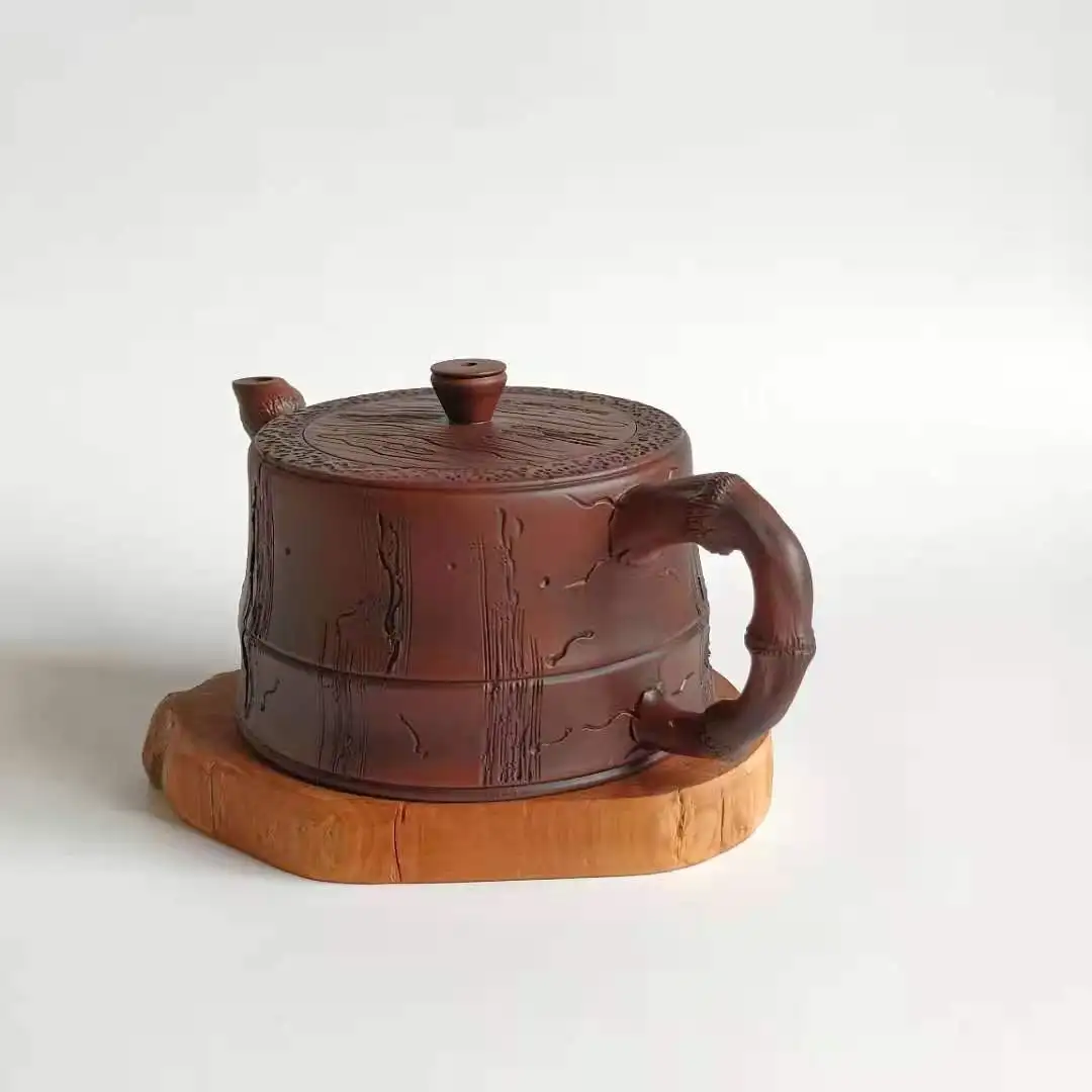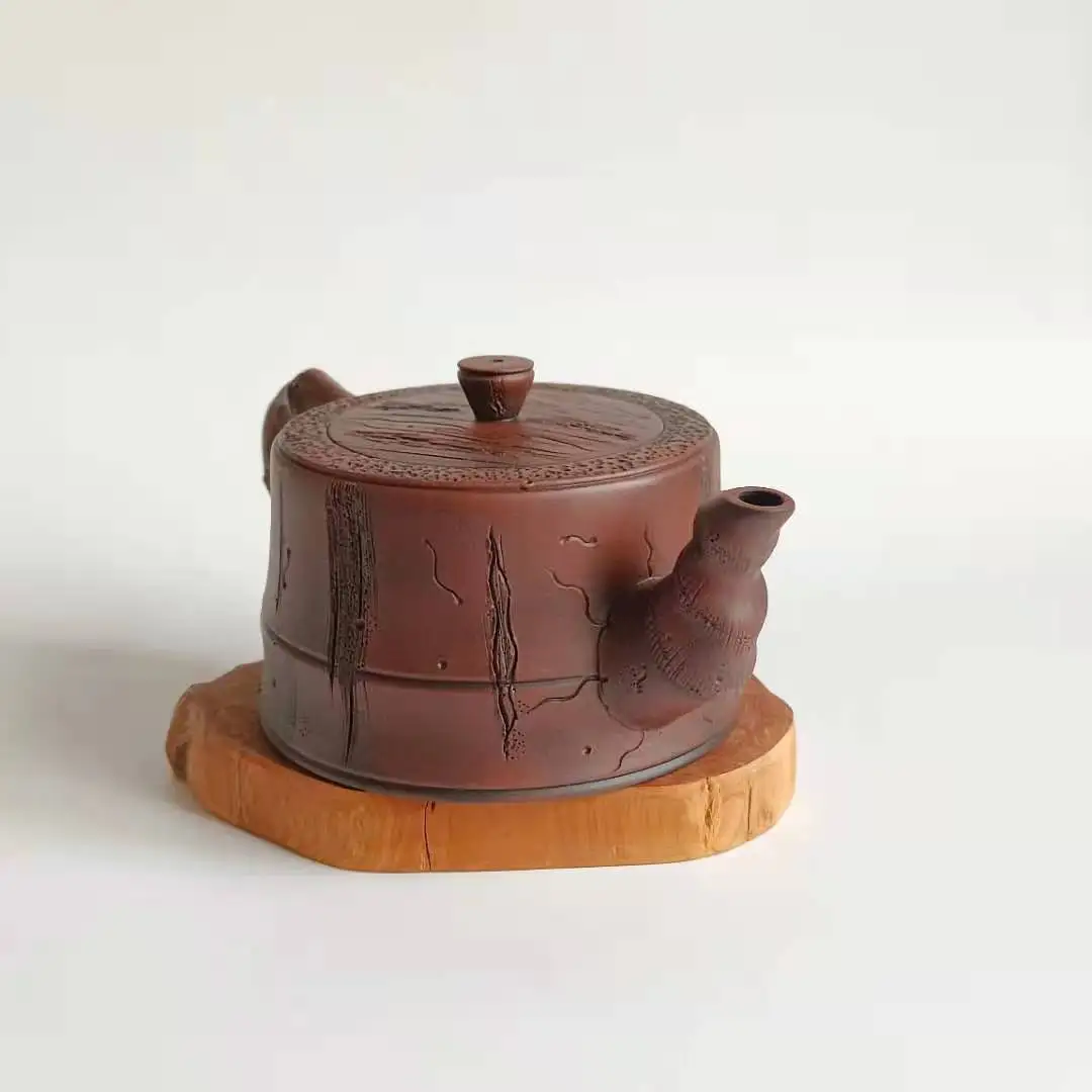 Jianshui purple pottery clay material : Will be taken from the Yunan Province Jianshui County of the unique purple, white, green, yellow, five kinds of clay raw materials such as pottery requirements for proportioning, the proportioned raw materials are made into powder, put into the pool soaking, stirring into a pulp, 200 to 300 mesh sieve filter again soaking, stirring, filtering, repeat 4 to 5 times, made of paste mud, sealed in the sun place to age. The aging time is not less than 3 months.