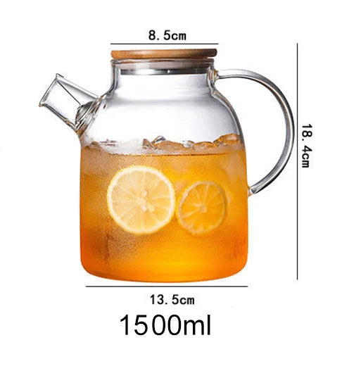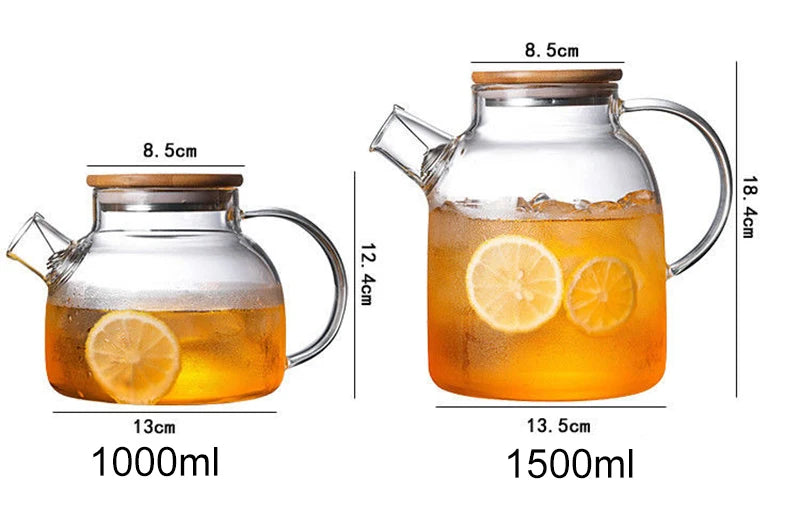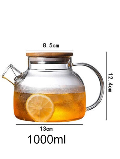 1L/1.5L Big Transparent Borosilicate Glass Teapot Heat-Resistant Large Clear Tea Pot Flower Tea Set Puer Kettle Office Home Tool