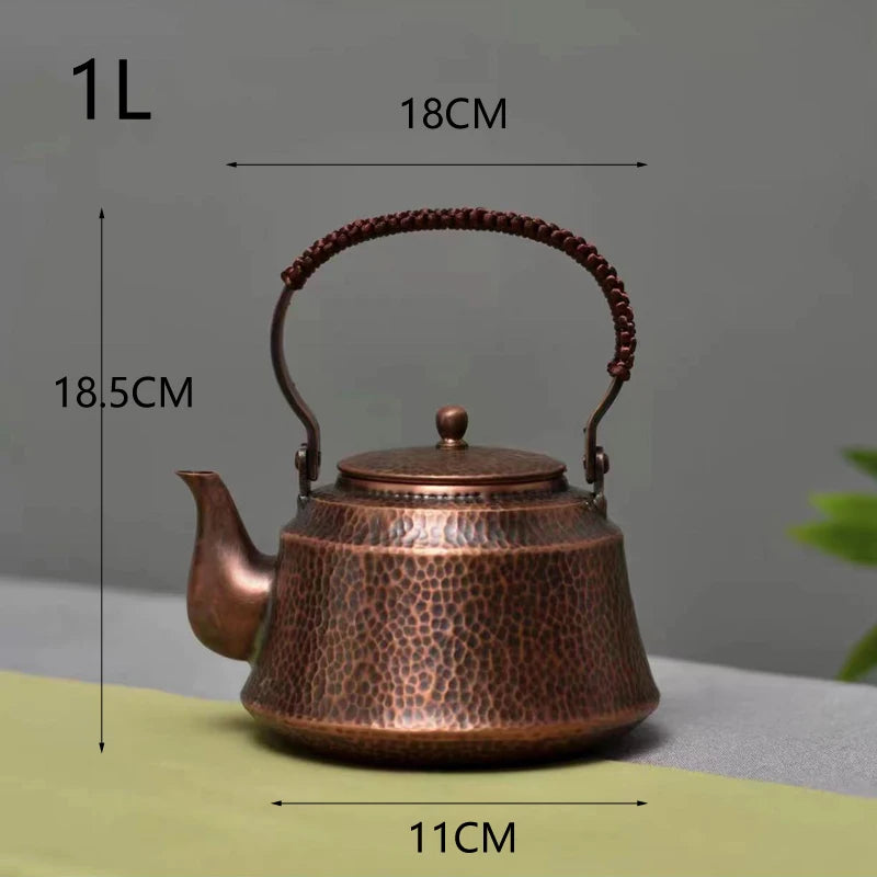 1L Pure Copper Hammer Pattern Teapot Handmade Kettle Boiler Antique Tableware Teaware
