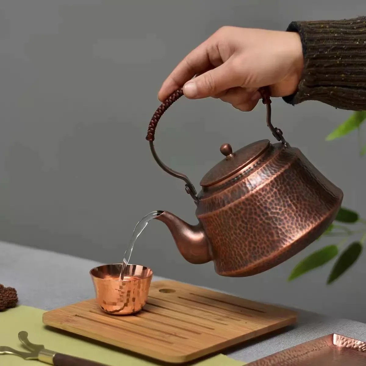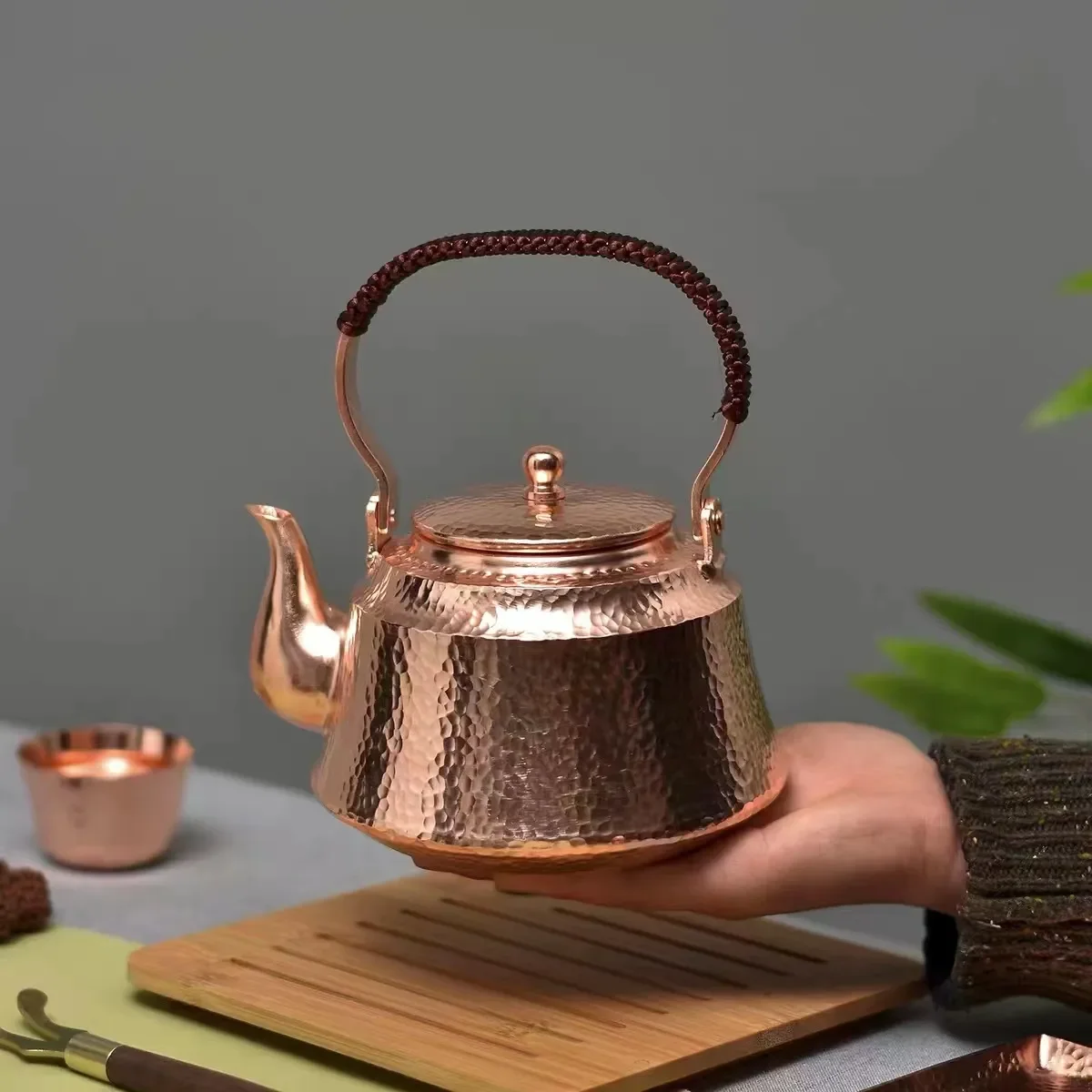 1L Pure Copper Hammer Pattern Teapot Handmade Kettle Boiler Antique Tableware Teaware