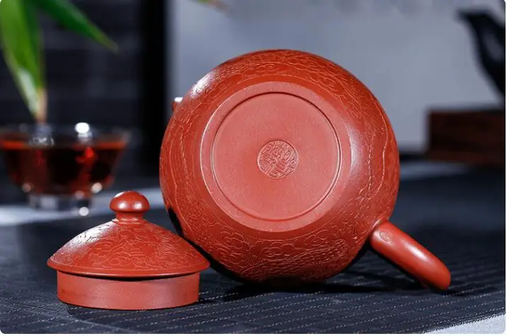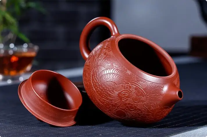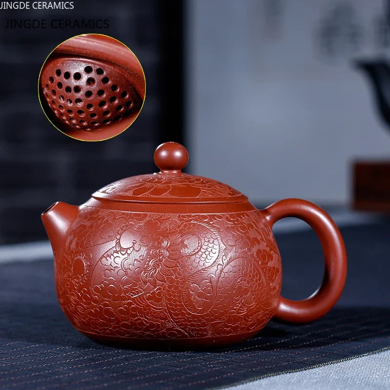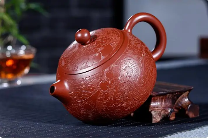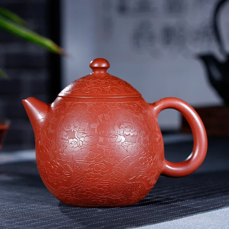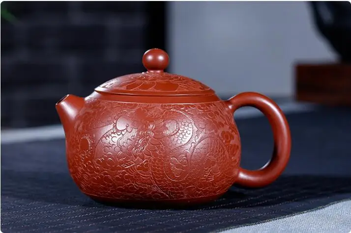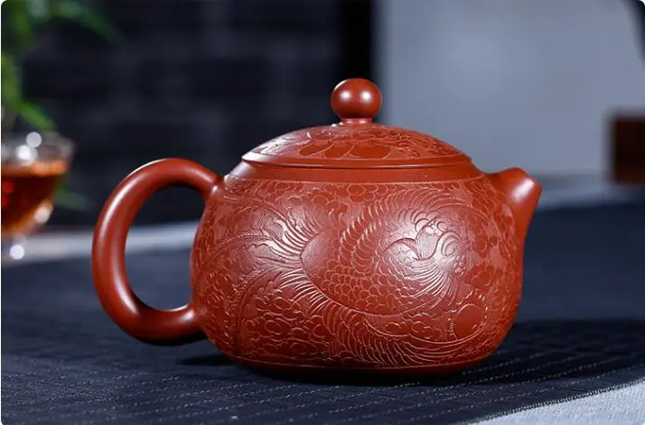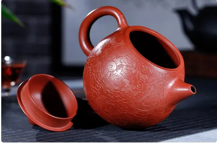 1pc Hand-carved Purple Clay Teapot Handprint Dragon Pattern Raw Ore Dahongpao Kettle Yixing Famous Tea Pot Teaware Tea Ceremony