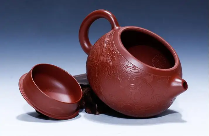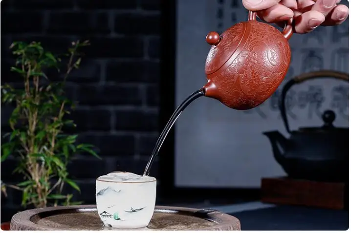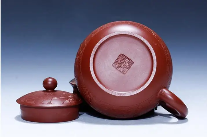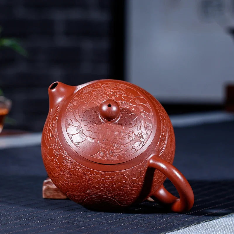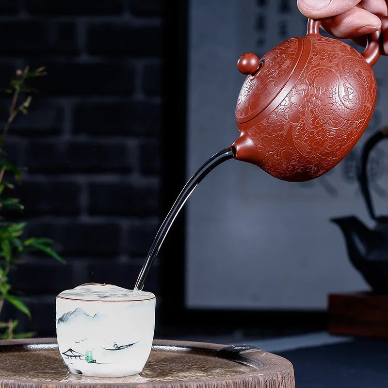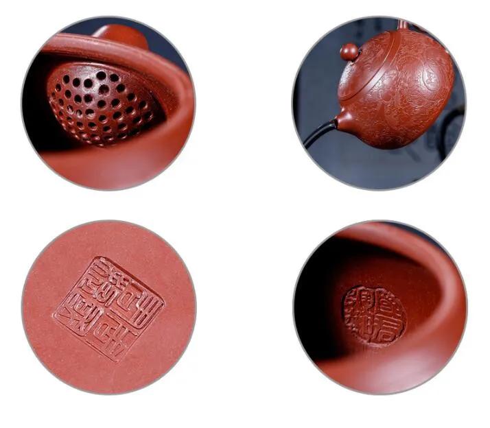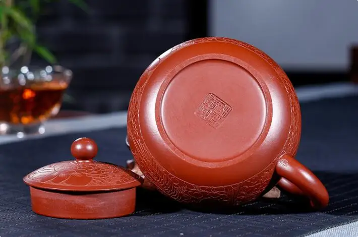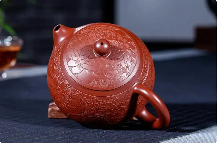 1pc Hand-carved Purple Clay Teapot Handprint Dragon Pattern Raw Ore Dahongpao Kettle Yixing Famous Tea Pot Teaware Tea Ceremony