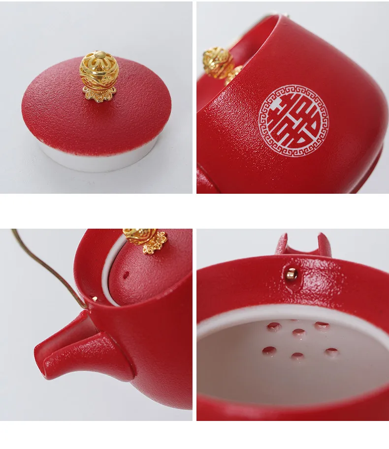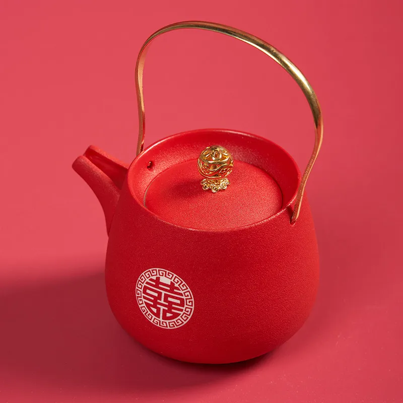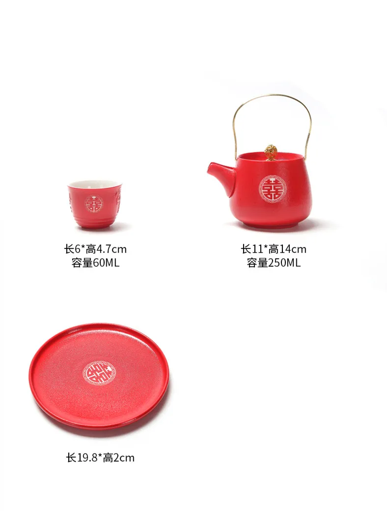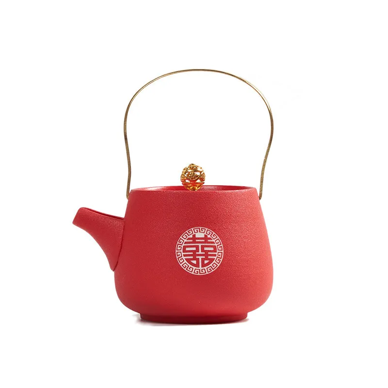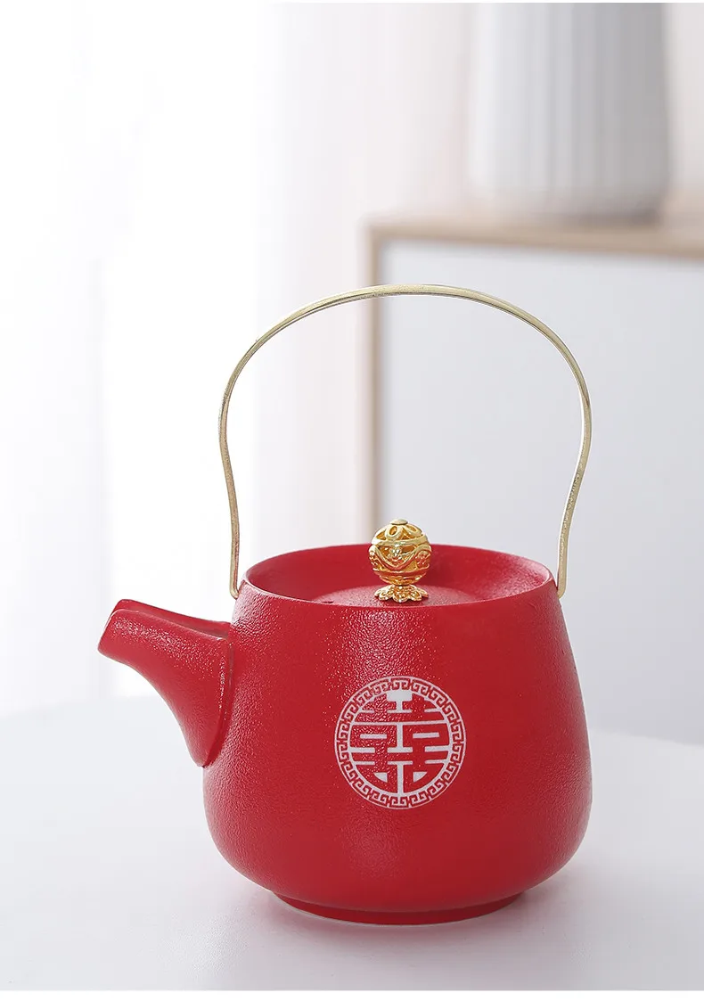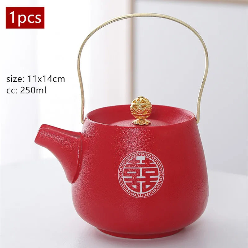 1pc Red Handmade Ceramic Teapot Chinese Tea Pot Beauty Kettle Wedding Supplies Household Tea Ceremony Customized Gifts 250ml