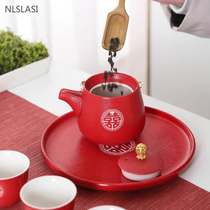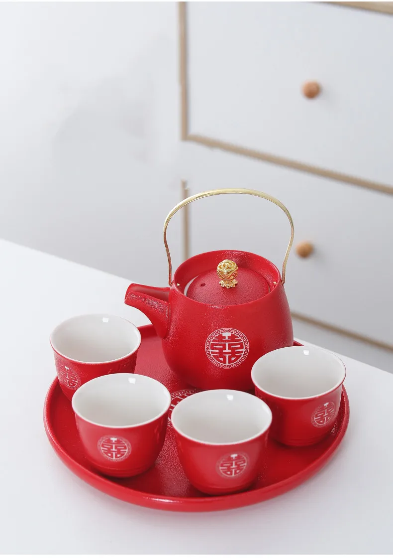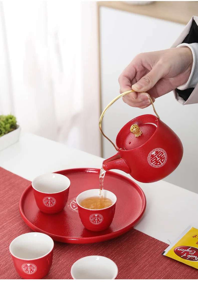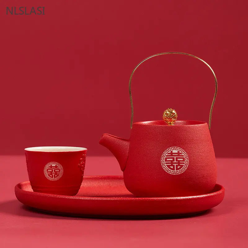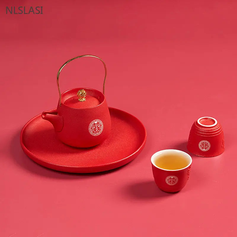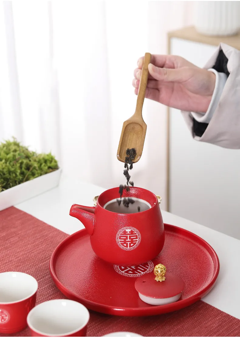 1pc Red Handmade Ceramic Teapot Chinese Tea Pot Beauty Kettle Wedding Supplies Household Tea Ceremony Customized Gifts 250ml