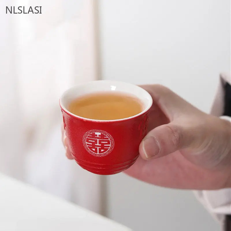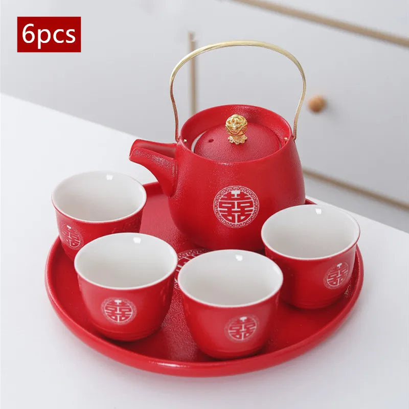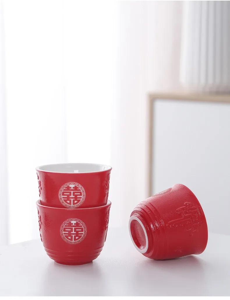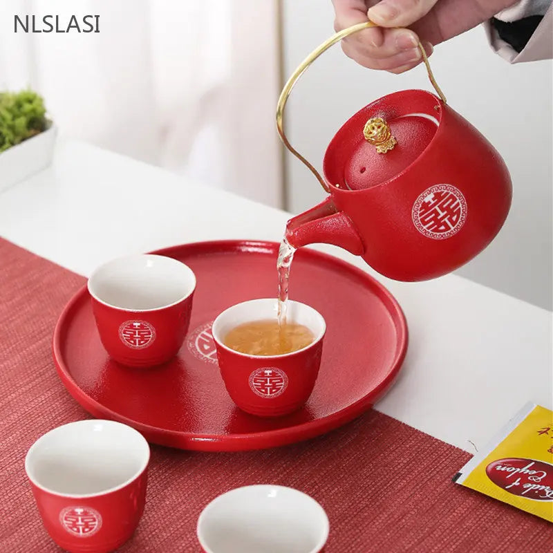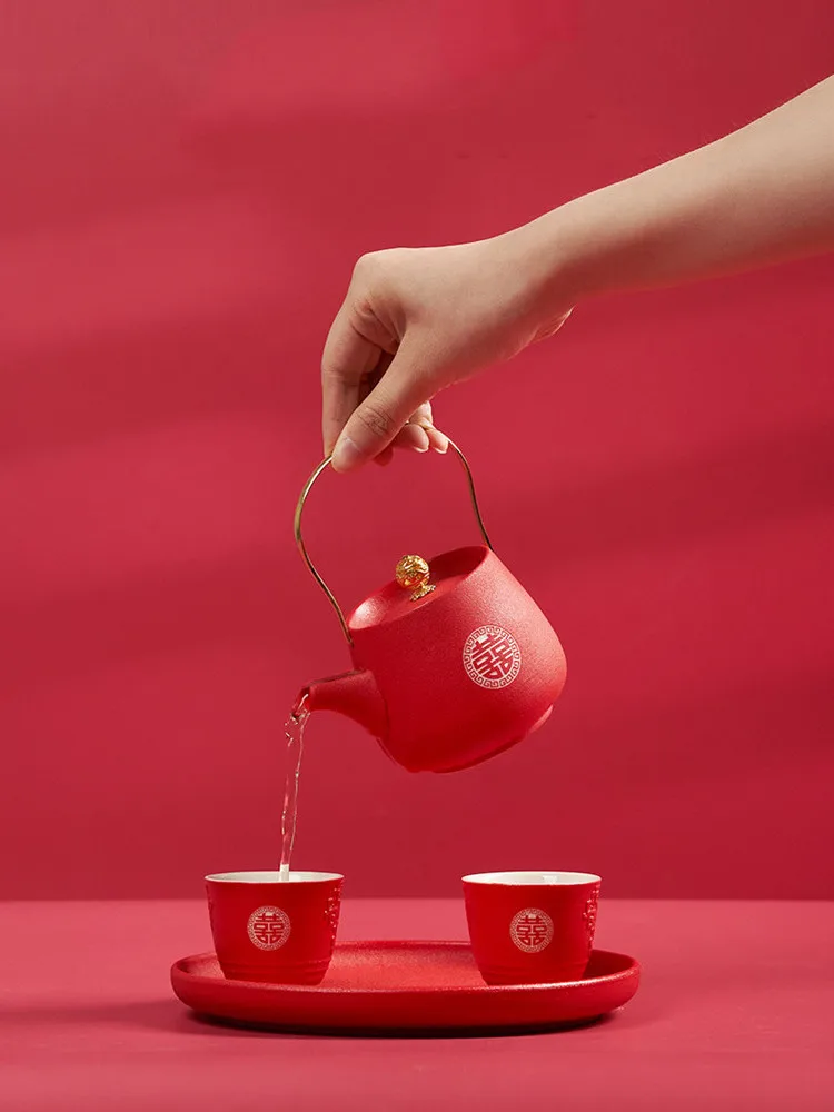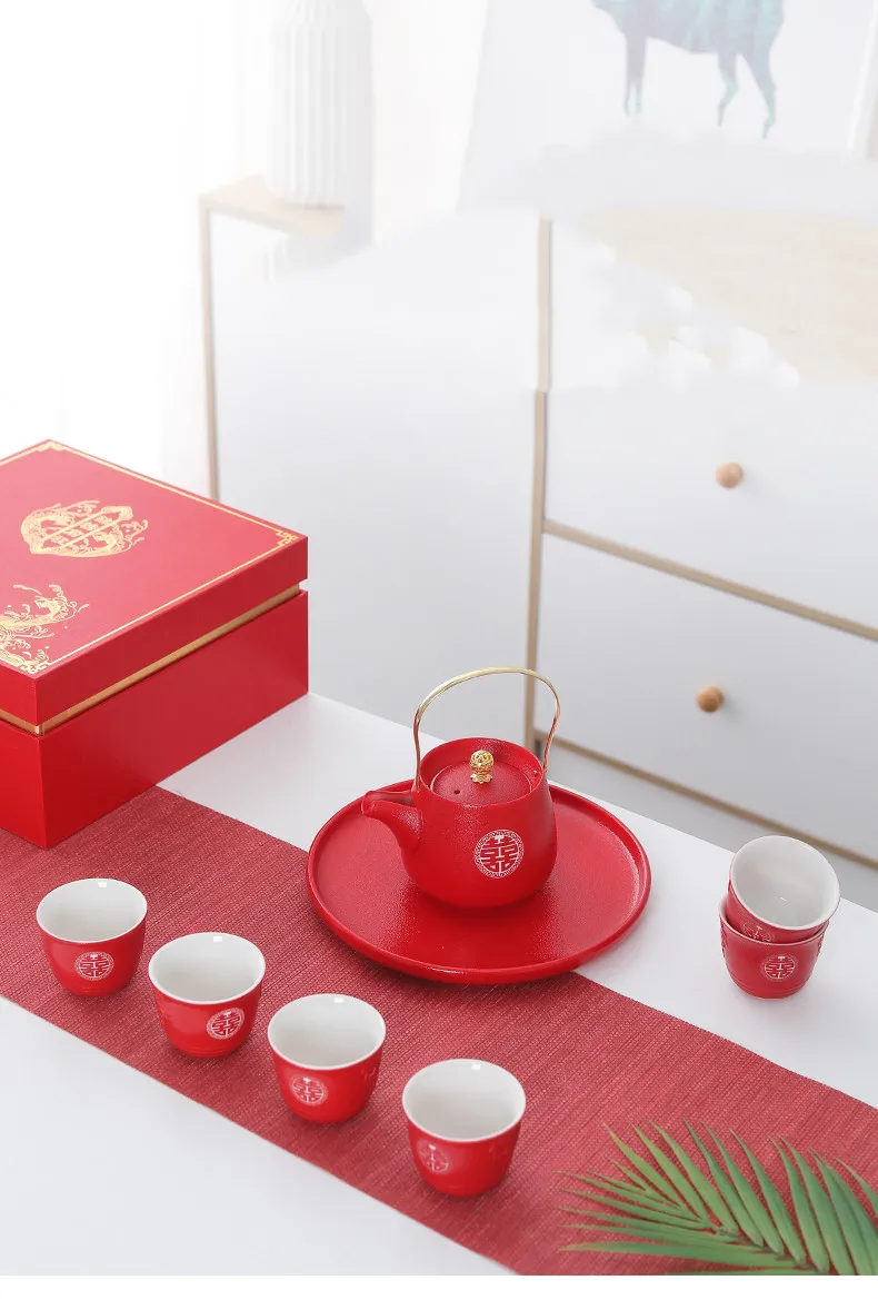 1pc Red Handmade Ceramic Teapot Chinese Tea Pot Beauty Kettle Wedding Supplies Household Tea Ceremony Customized Gifts 250ml