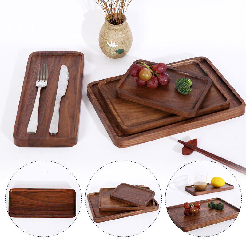 1pcs Wooden Serving Tray Square Plate Tableware Food Tea Server Kitchen Dishes