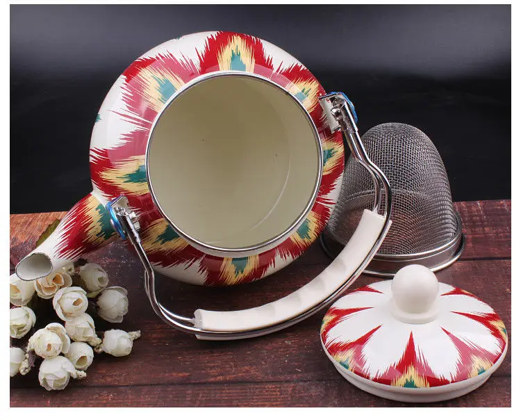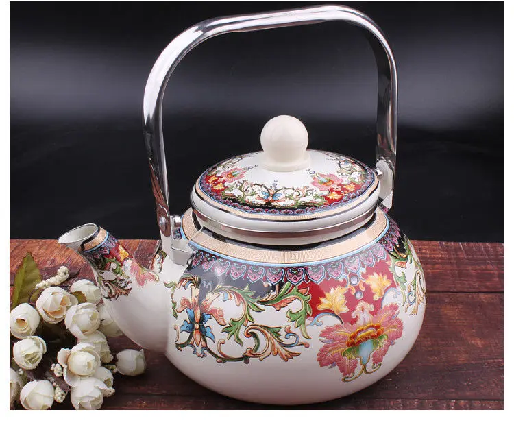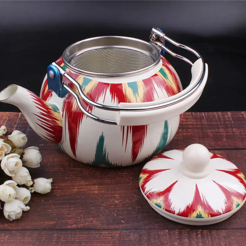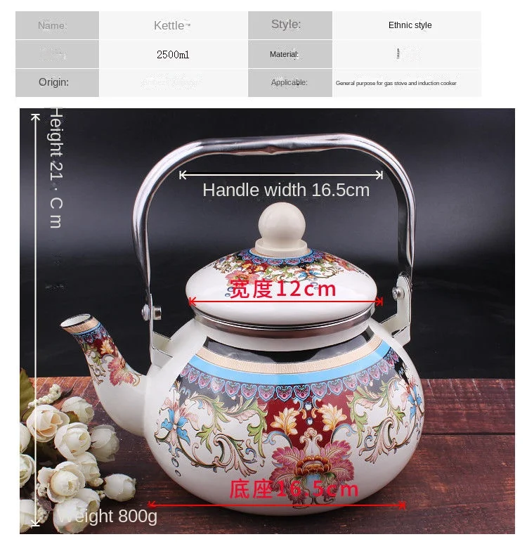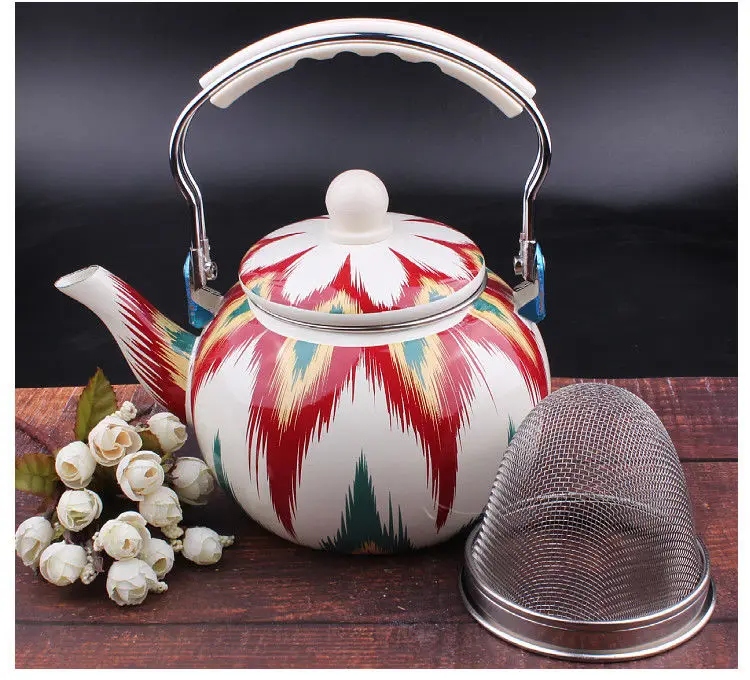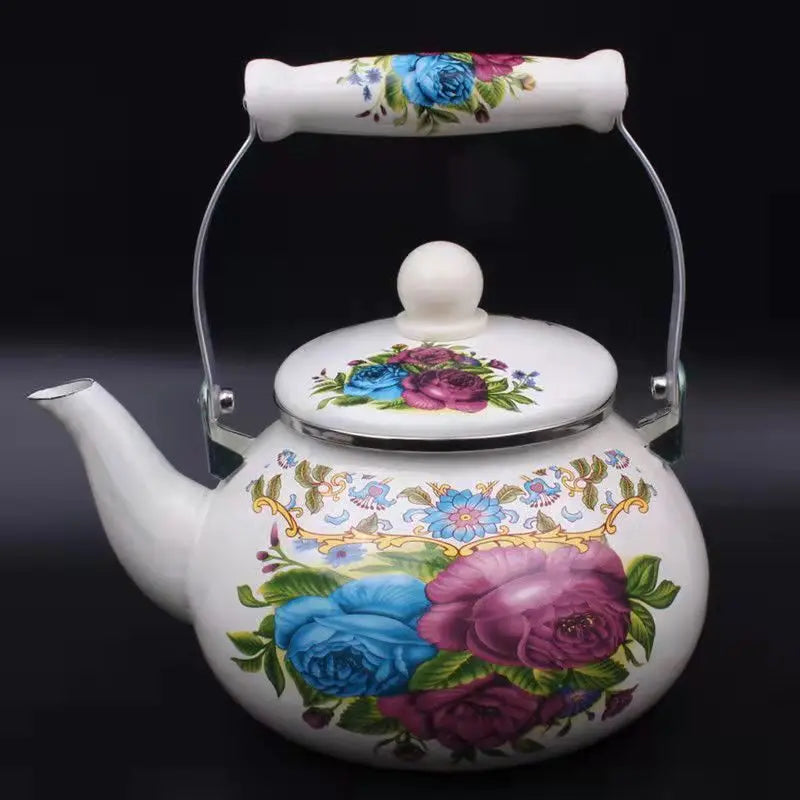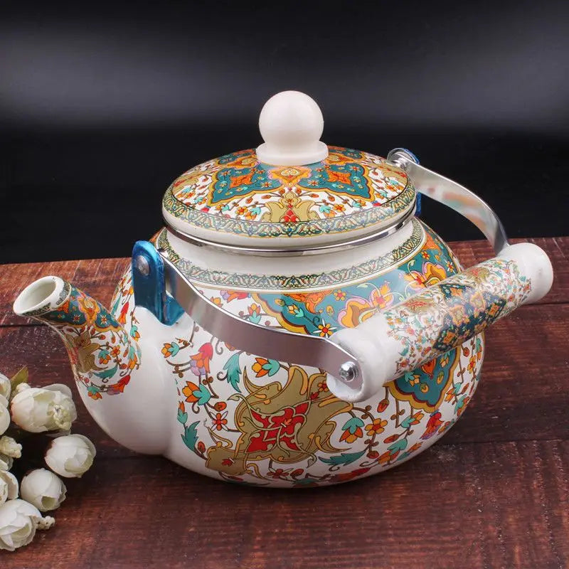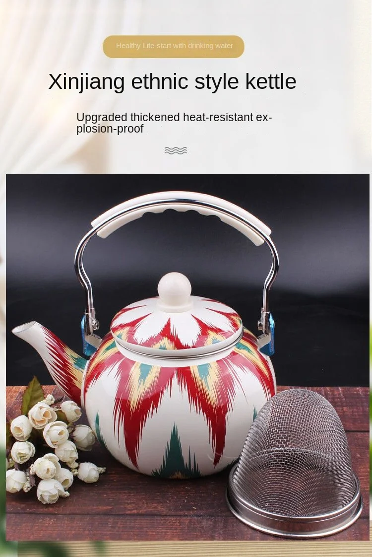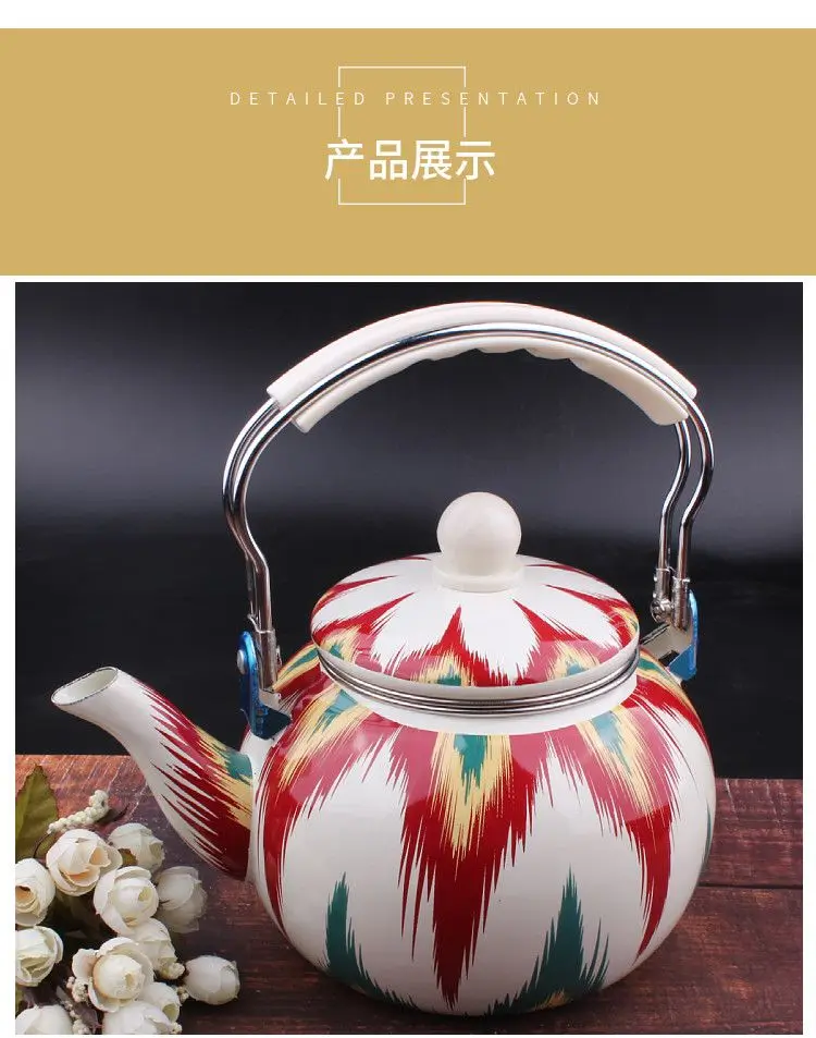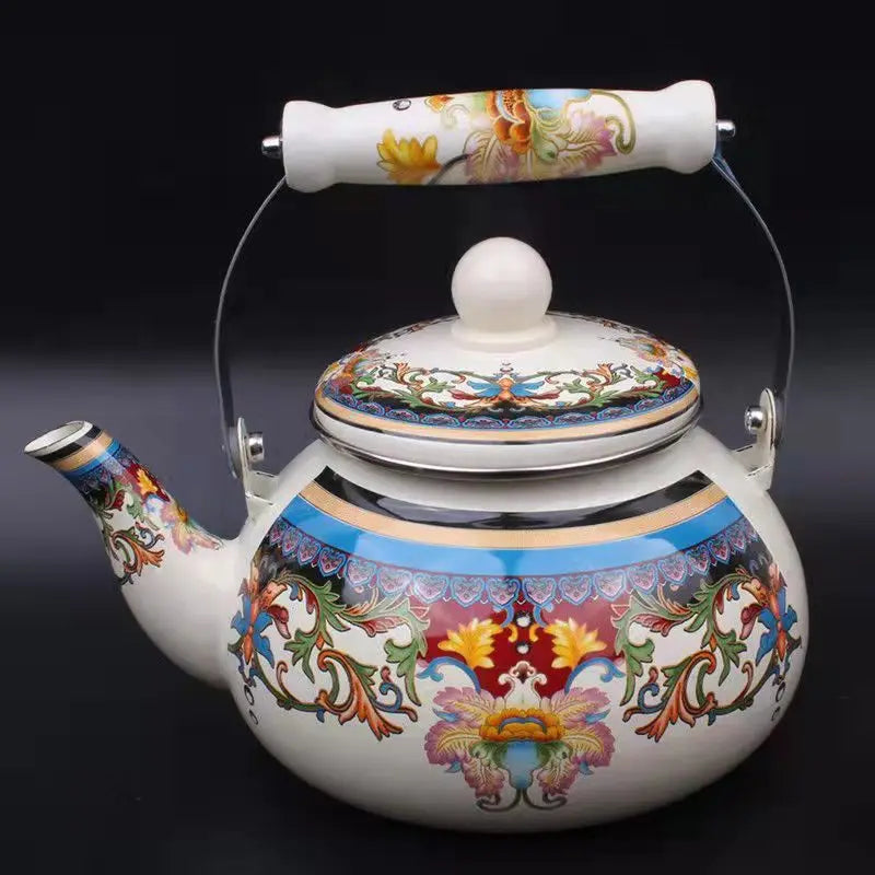 2.4/2.5L Hand Painted Enamel Teapot Ethnic Restaurant Milk Tea Kettle Tea Set Boiling Kettle